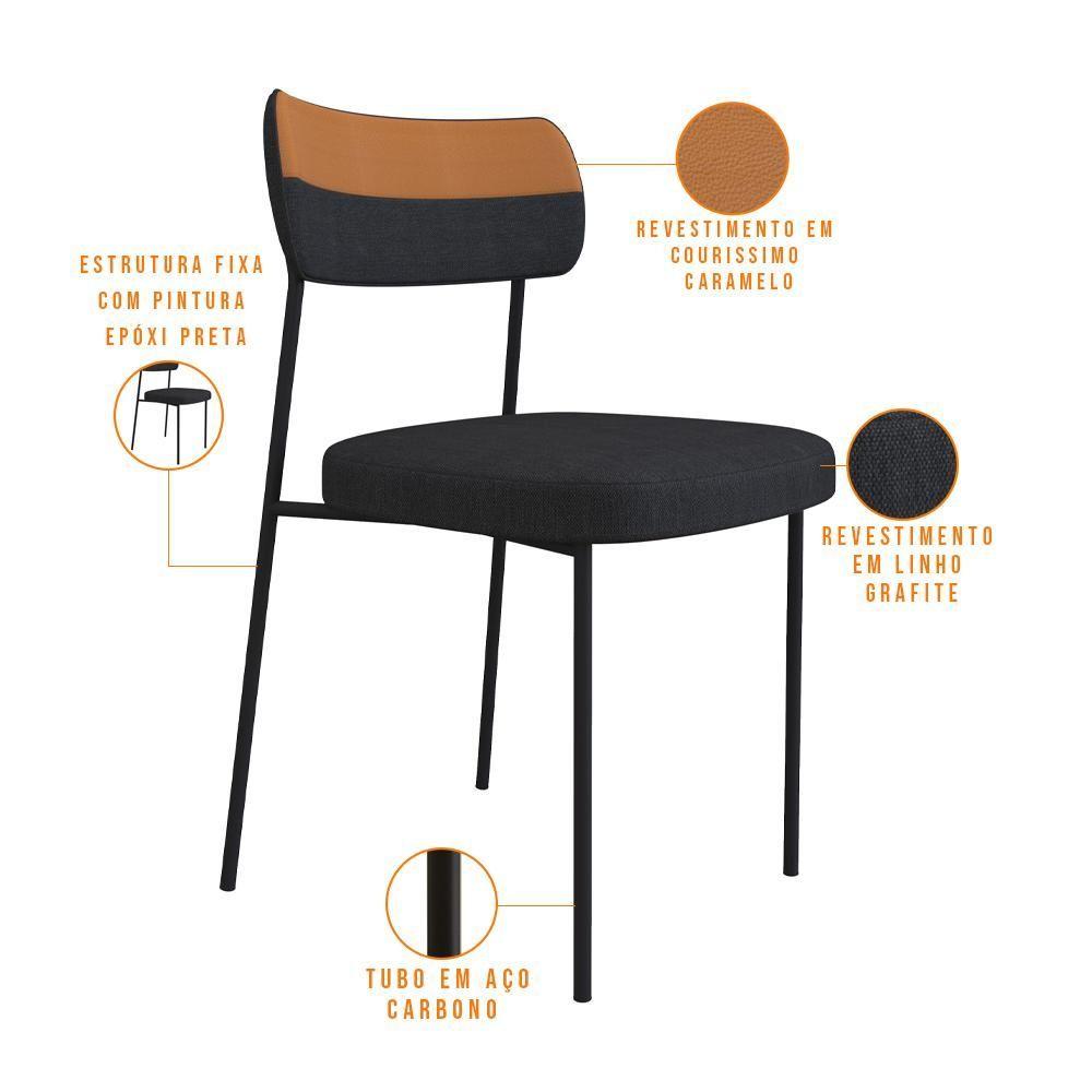 Cadeira Estofada Sala De Jantar F01 Linho Grafite Caramelo