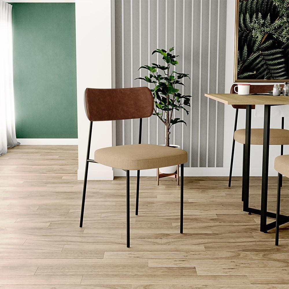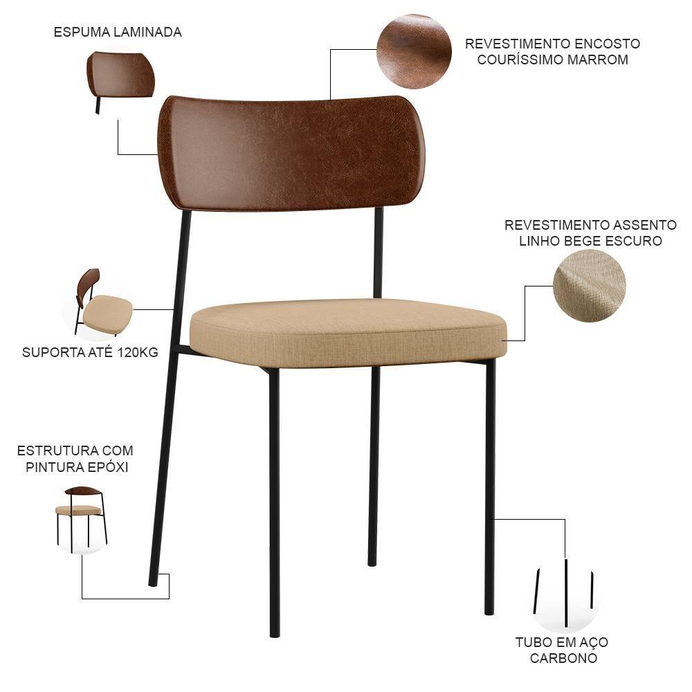 Cadeira Decorativa Para Sala De Jantar Melina L02 Couríssimo Marrom Linho Bege Escuro - Lyam DecorCaso você esteja buscando conforto, realce e praticidade, a Cadeira Decorativa Estofada Para Sala De Jantar Melina L02 Couríssimo Marrom Linho Bege Escuro - Lyam Decor vai superar todas as suas expectativas. Garante muita comodidade e otimiza o espaço, além de harmonizar com seu estilo decorativo facilmente, podendo ser utilizada em salas de estar, jantar e cozinha, além de dar um toque especial em sua decoração. Sua proposta de design suavizará seu ambiente sem passar despercebida oferecendo mais leveza e receptividade ao seu lar. Estruturada em aço carbono, contrasta lindamente com o encosto e assento estofados que são extremamente confortáveis, resistentes e aconchegantes. Você merece esta incrível combinação em sua casa, adquira já a sua!Dimensões da Cadeira (L x A x P) 47 x 79 x 52,5 cmMedidas Internas: Altura do encosto: 33 cm Largura do encosto: 48,5 cm Altura do assento: 6 cm Largura do assento: 44 cm Profundidade do assento: 45 cm Altura do Assento ao chão: 48 cmCaracterísticas: Encosto e assento estofados com espuma laminada. Estrutura fixa em aço carbono com pintura epóxi na cor preto. Revestimento em Couríssimo Marrom e Linho Bege Escuro. Peso suportado: Até 120 kg.- Por se tratar de estofado as medidas podem ter uma pequena variação de até 3 cm. - A tonalidade do produto real poderá ter ligeira variação devido o lote de tecidos. - A limpeza deve ser feita com pano levemente umedecido em água limpa, sem esfregar, não utilizar produtos abrasivos, desengordurantes, álcool ou solvente.Observações importantes: - Produto para uso residencial em ambiente interno, não devendo ficar exposto diretamente ao sol, calor e umidade excessivos. - Pode haver alguma diferença de tonalidade entre a imagem e o produto real, por conta do tratamento de imagens e a calibração de cores do seu monitor. - As imagens são meramente ilustrativas, não acompanham objetos de decoração e eletrônicos. - Ao receber a mercadoria, o cliente deve verificar as condições da embalagem, caso haja alguma não assine o de . - Montagem, desmontagem e outras instalações serão de responsabilidade do cliente. Não nos responsabilizamos, no ato da , por subir escadas/elevadores ou pelo por guincho em apartamentos. Eventuais despesas são de responsabilidade do comprador. - Confira as dimensões do produto e certifique-se de que passará normalmente por supostos elevadores, portas, escadas e/ou corredores de sua residência. NA