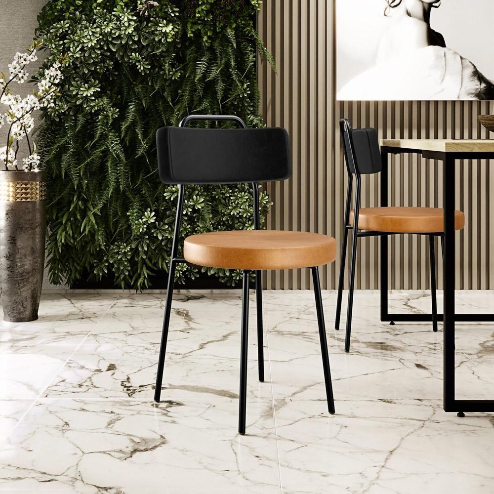 Cadeira Decorativa Estofada Para Sala De Jantar Barcelona L02 Couríssimo Preto Whisky