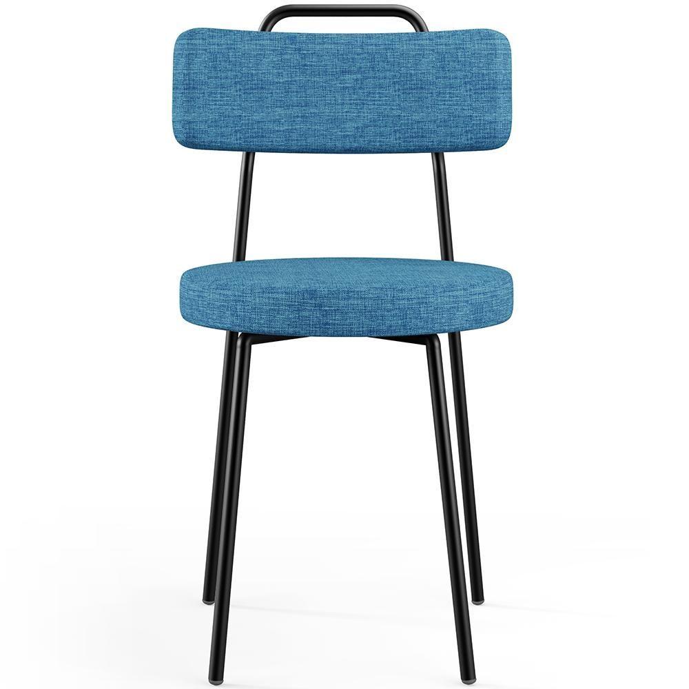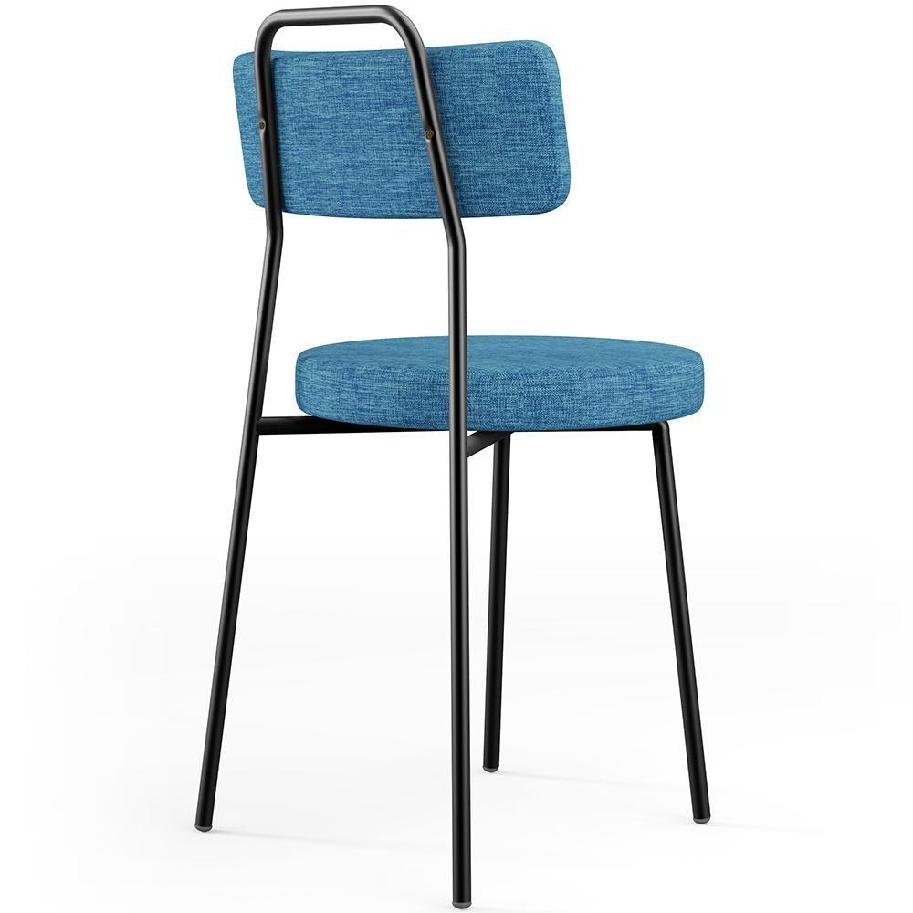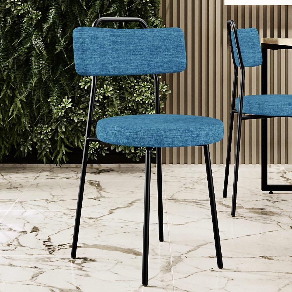Cadeira Decorativa Estofada Para Sala De Jantar Barcelona L02 Linho Azul - Lyam Decor