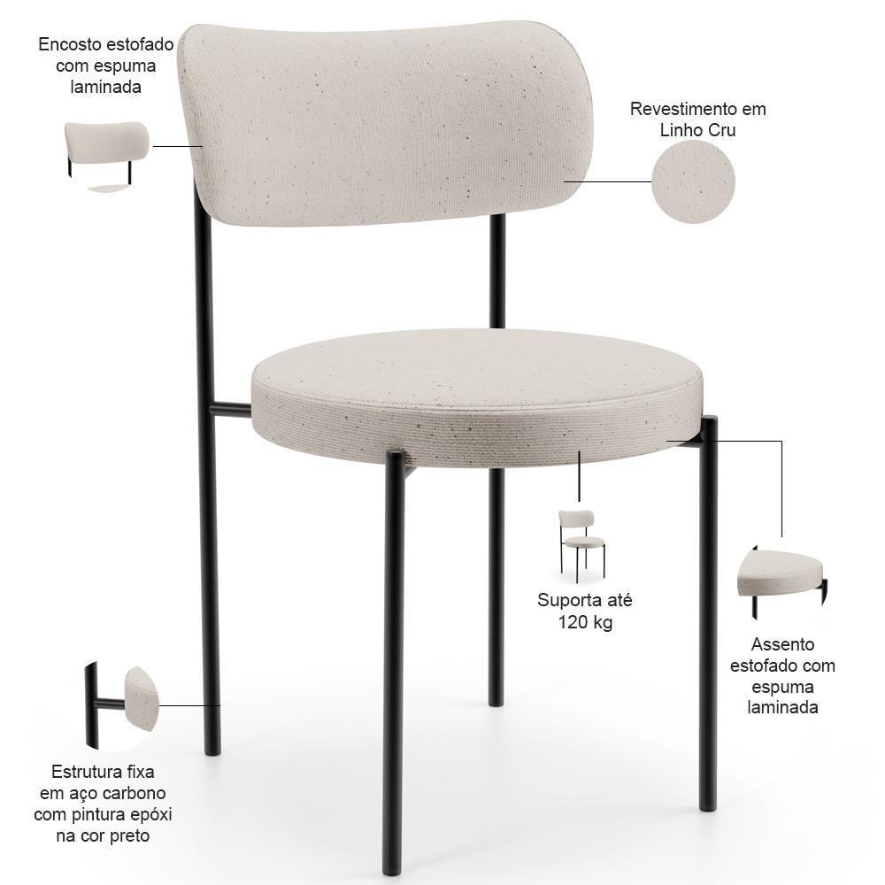 Cadeira Decorativa Estofada Para Sala De Jantar Louise L02 Linho Cru - Lyam Decor