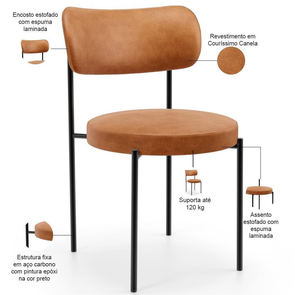 Cadeira Decorativa Estofada Para Sala De Jantar Louise L02 Couríssimo Canela - Lyam Decor