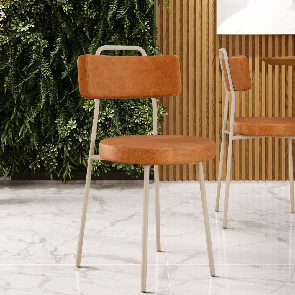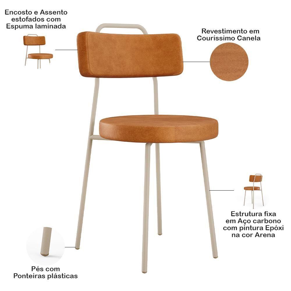 Cadeira Decorativa Estofada Para Sala De Jantar Barcelona Arena L02 Couríssimo Canela - Lyam