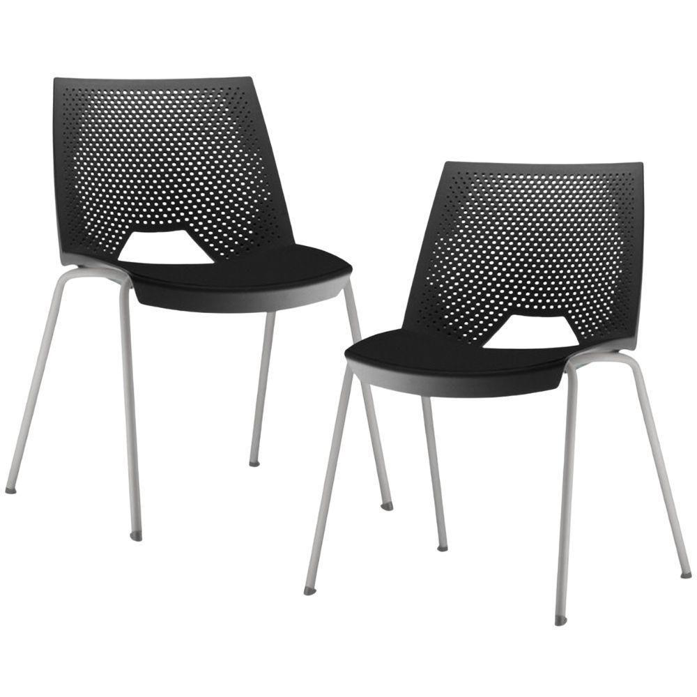 Kit 02 Cadeiras Empilhável Fixa Liked F02 Base Aço Cinza Preto - Lyam Decor