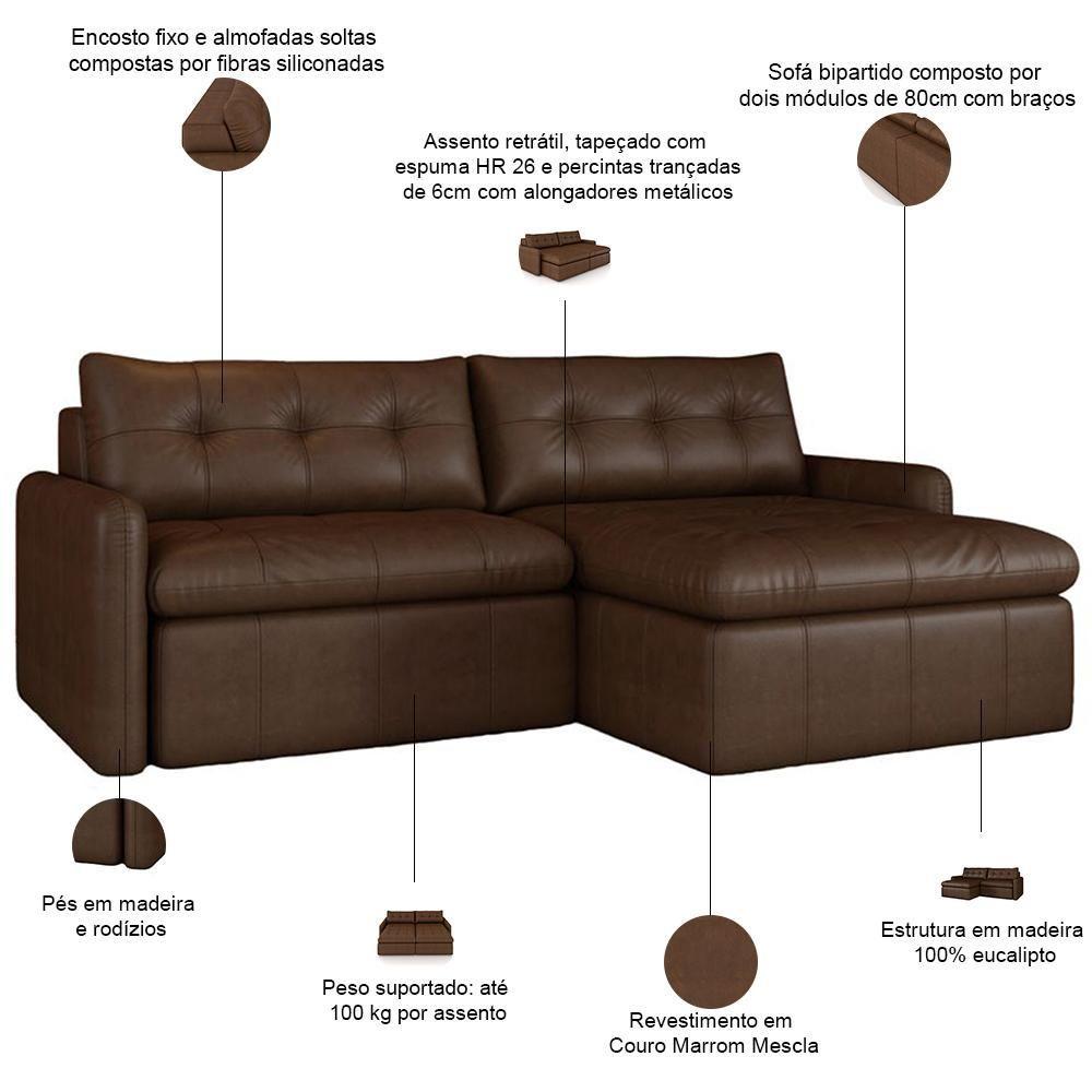 Sofá Retrátil 2 Lugares Para Sala De Estar 184cm Zuno P08 Couro Marrom Mescla - Lyam Decor
