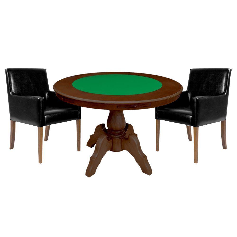 Mesa De Jogos Carteado Redonda Montreal Tampo Reversível Imbuia Com 2 Cadeiras Liverpool Corino Preto Liso G36 G15 - Gran Belo