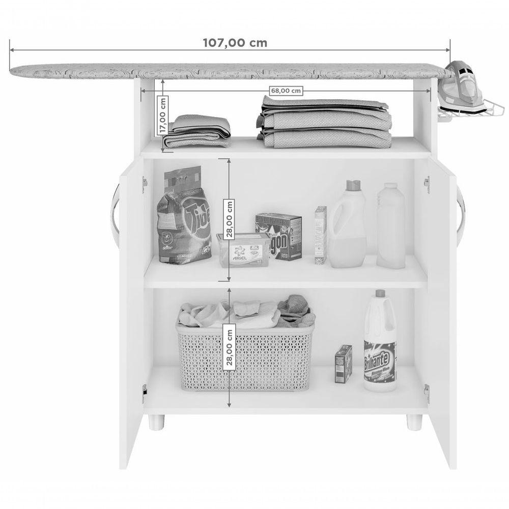 Tábua De Passar Magnólia Branco - MoveisaquiProporcionando uma área de mais organizada e prática. A Tábua Magnólia - MoveisAqui, possui suporte aramado para o ferro de passar, garantindo maior no manuseio. Seu tampo, conta com espuma e tecido, trazendo mais conforto na rotina de . Além de permitir a organização com duas ões do Produto montado:Altura: 86 cmLargura: 118 cmProfundidade: 36 cmObservações:- Duas portas;- Suporte para ferro elétrico;- Tampo com espuma e tecido;- Pintura Ultravioleta com acabamento brilho.