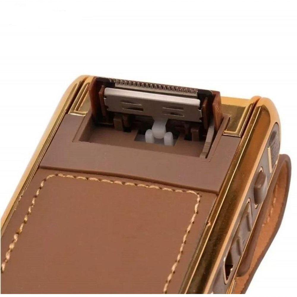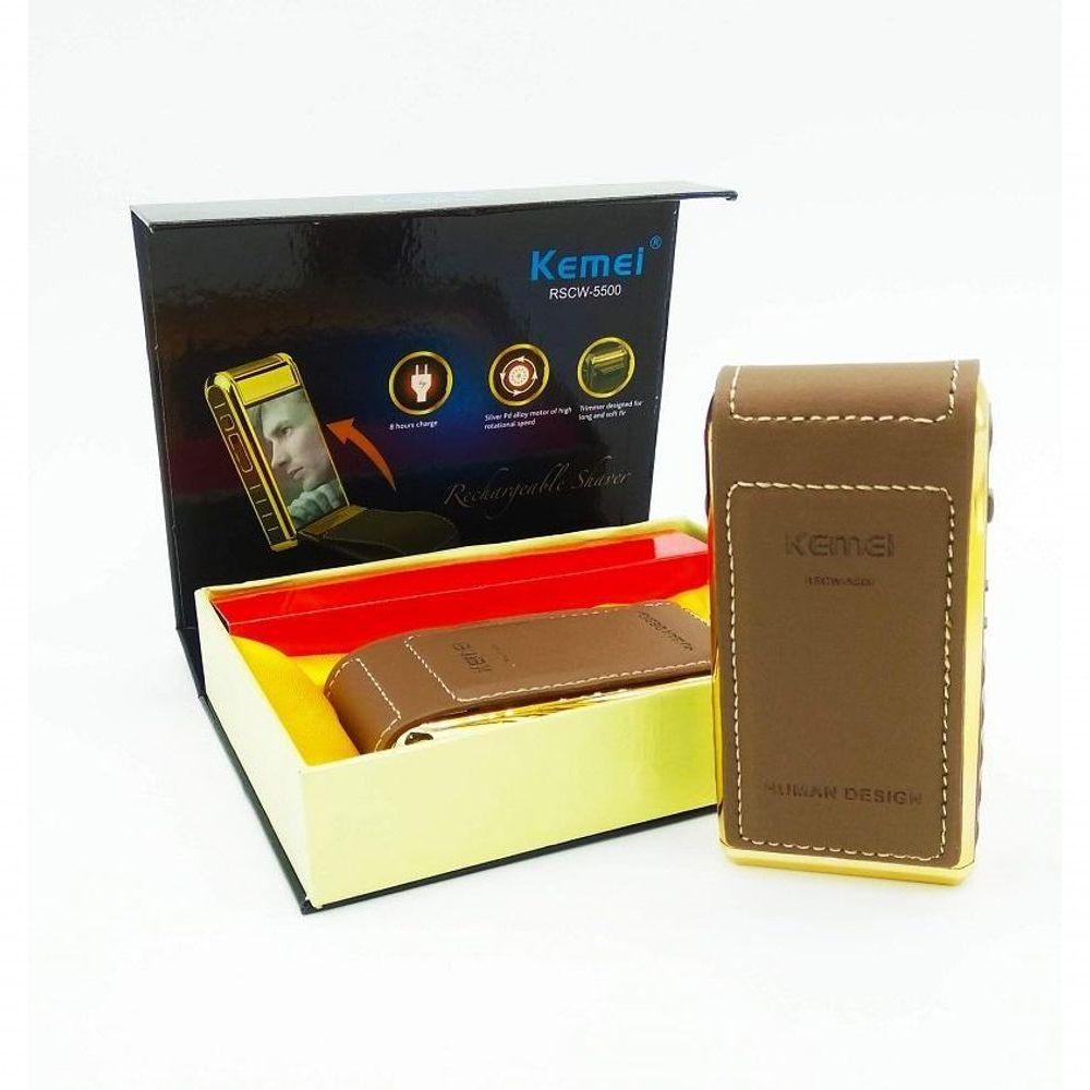 Barbeador Elétrico Recarregável Máquina Kemei Rscw-5500Barbeador elétrico alternativo.o projeto do vintage, envolto por couro, uma melhor proteção e mais nobre olhar.2-em-1, barbeador elétrico ou depilador pessoal macio, perfeitamente fazer a barba.com a bateria de lítio recarregável, é absolutamente conveniente para você fazer a barba a qualquer momento.especificação:Material: Couro + Do Metaltensão: 110-240 Vfreqüência: 50-60Hzpotência: 3 Wtempo de carregamento: 8 horastempo de operação: 30 minutoscor: Douradopeso: 124gtamanho: 5.5 x 10.5 cmConteúdo Do pacote:1 x Barbeador Elétrico1 x Plug1 x escova De Limpeza1 x folha de Reposição1 x cabeça de corte de Reposição