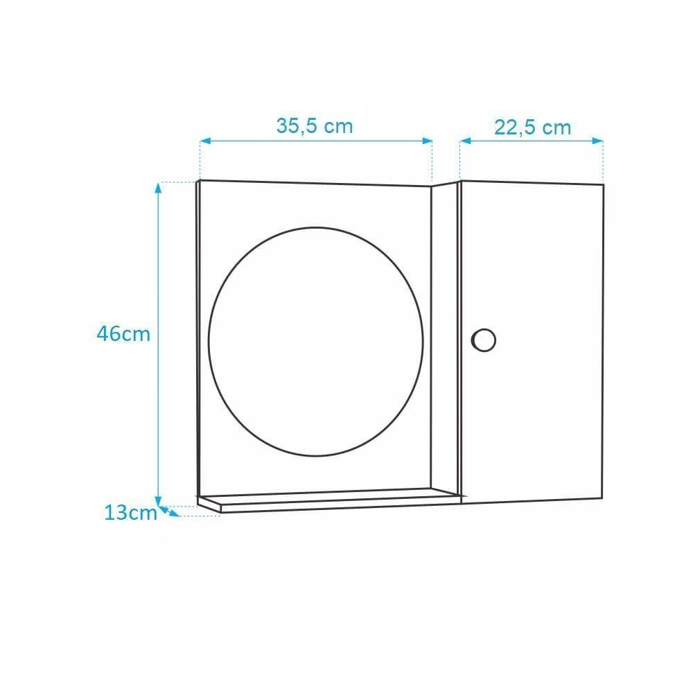 Espelho Redondo Para Banheiro Com Armário Amarelo Espelho Redondo para Banheiro com Armário Amarelo. Já vem montado, pronto para colocar na parede. É só abrir a caixa e instalar em seu banheiro. Acompanha 2 parafusos com buchas para instalar na parede. Obs: a colocação dele na parede é por conta do cliente, mas é bem fácil de fazer, basta uma furadeira, régua e lápis para marcar o local de instalação. Basta colocar os dois parafusos na parede, depois encaixar o armário com espelho neles (tem 2 suportes metálicos atrás do armário, para encaixar nos parafusos). Armário para Banheiro com Espelho na cor Amarelo é ideal para organizar vários itens. Possui prateleira interna em vidro, armário com porta e amplo espelho. É a escolha perfeita para seu banheiro. Material: MDP 15mm Cor: Amarelo Altura total: 46cm Largura total: 58cm Profundidade total: 12,5cm Instalação: a montagem e instalação do produto na parede são por conta do cliente Limpeza e conservação: recomenda-se a limpeza com pano úmido, não utilizar produtos abrasivos ou químicos Obs: Este anuncio inclui somente o armário com espelho, todos os itens de decoração das fotos não estão inclusos.Marca : MERCADO DAS PRATELEIRASGarantia : 3 meses