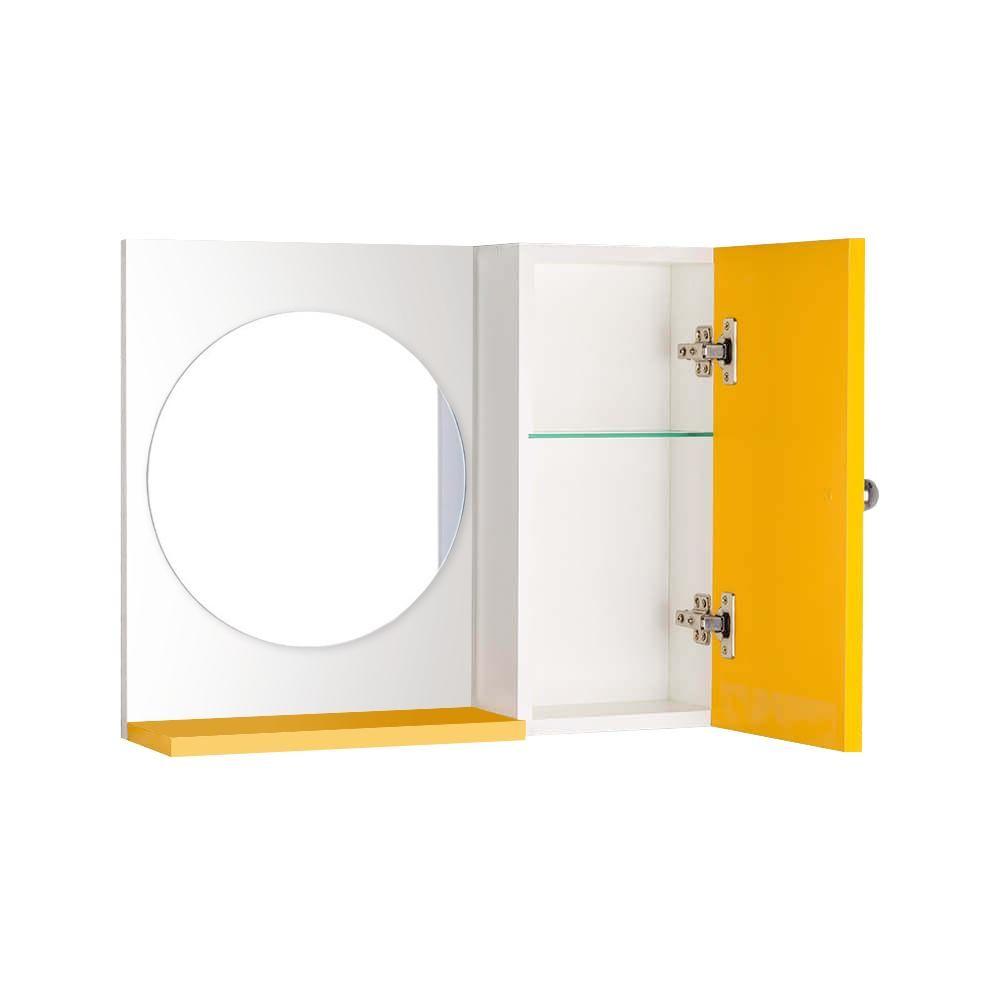 Espelho Redondo para Banheiro com Armário Amarelo