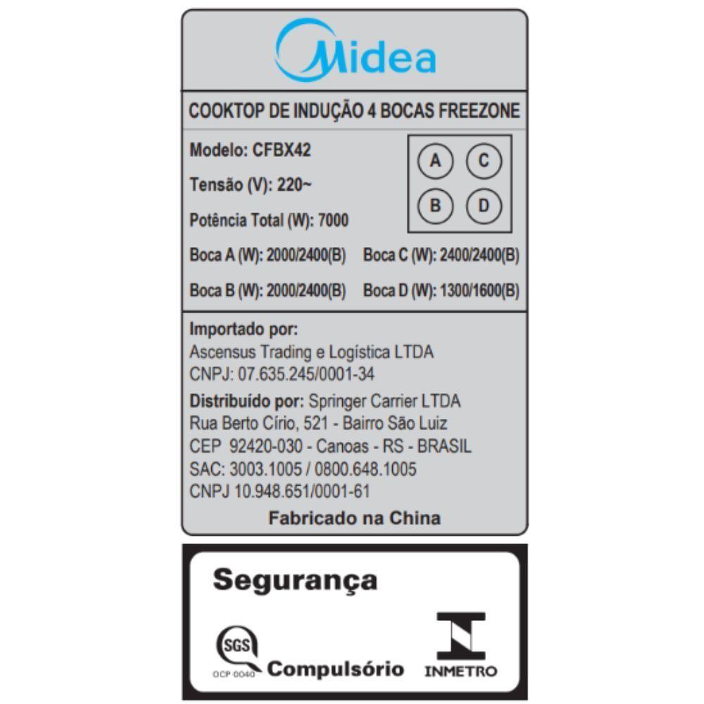 Cooktop 4 Bocas De Indução 77cm Freezone Even Pro Midea CFBX42 - 220V