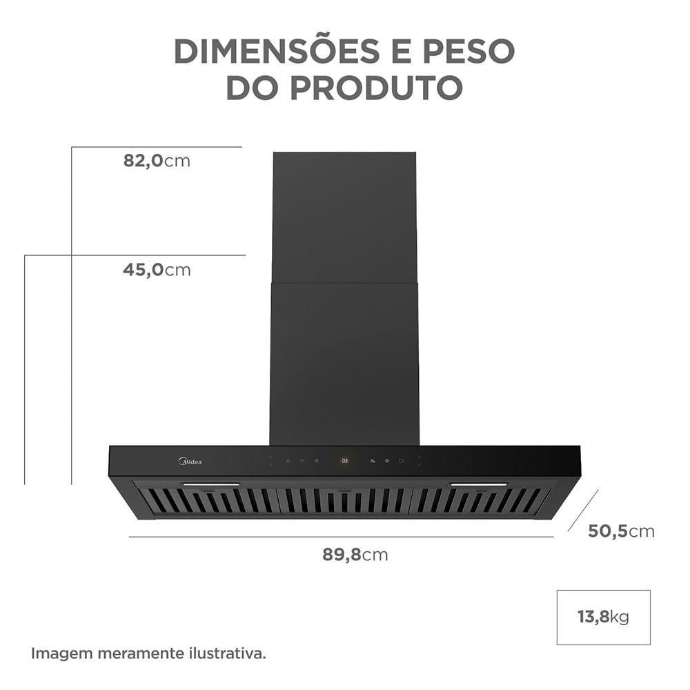 Coifa De Parede 90cm Black Inox Smart Pro Touch Midea MH90M77AT22BW1 110V