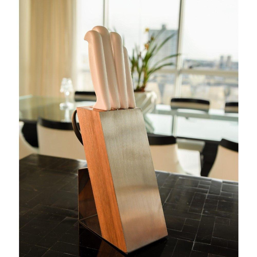 Cepo De Madeira Com Inox Para Facas Universal Kort Domama