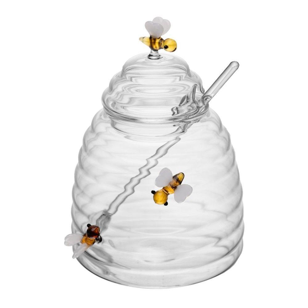 Kit Açucareiro + Meleira + Chaleira De Vidro Lovely Bee Lyor