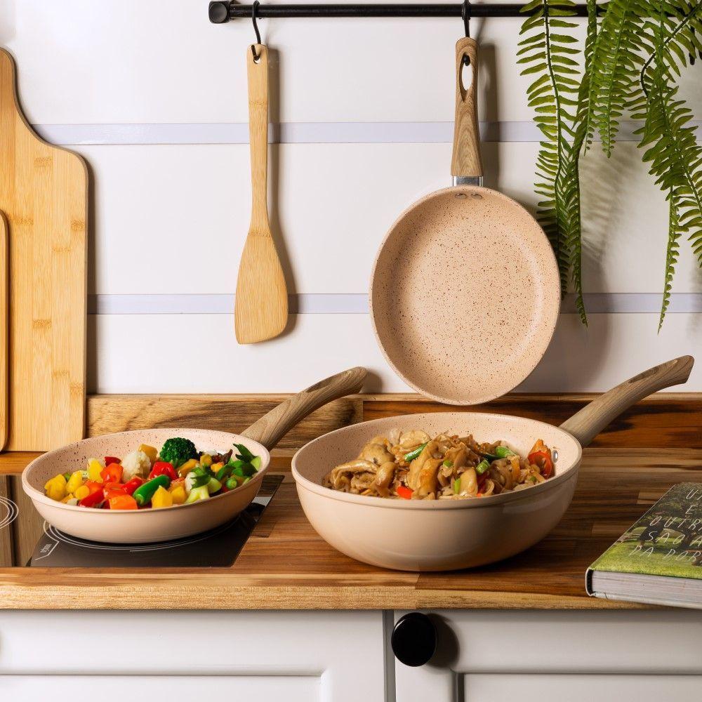 Jogo De Panelas Indução Chef 5 Peças Bege Em Alumínio Com Revestimento Cerâmico Lyor