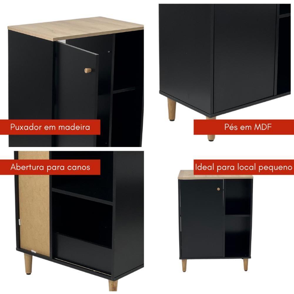 Gabinete Armário Banheiro Ditália 1 Porta Bn-06 Preto
