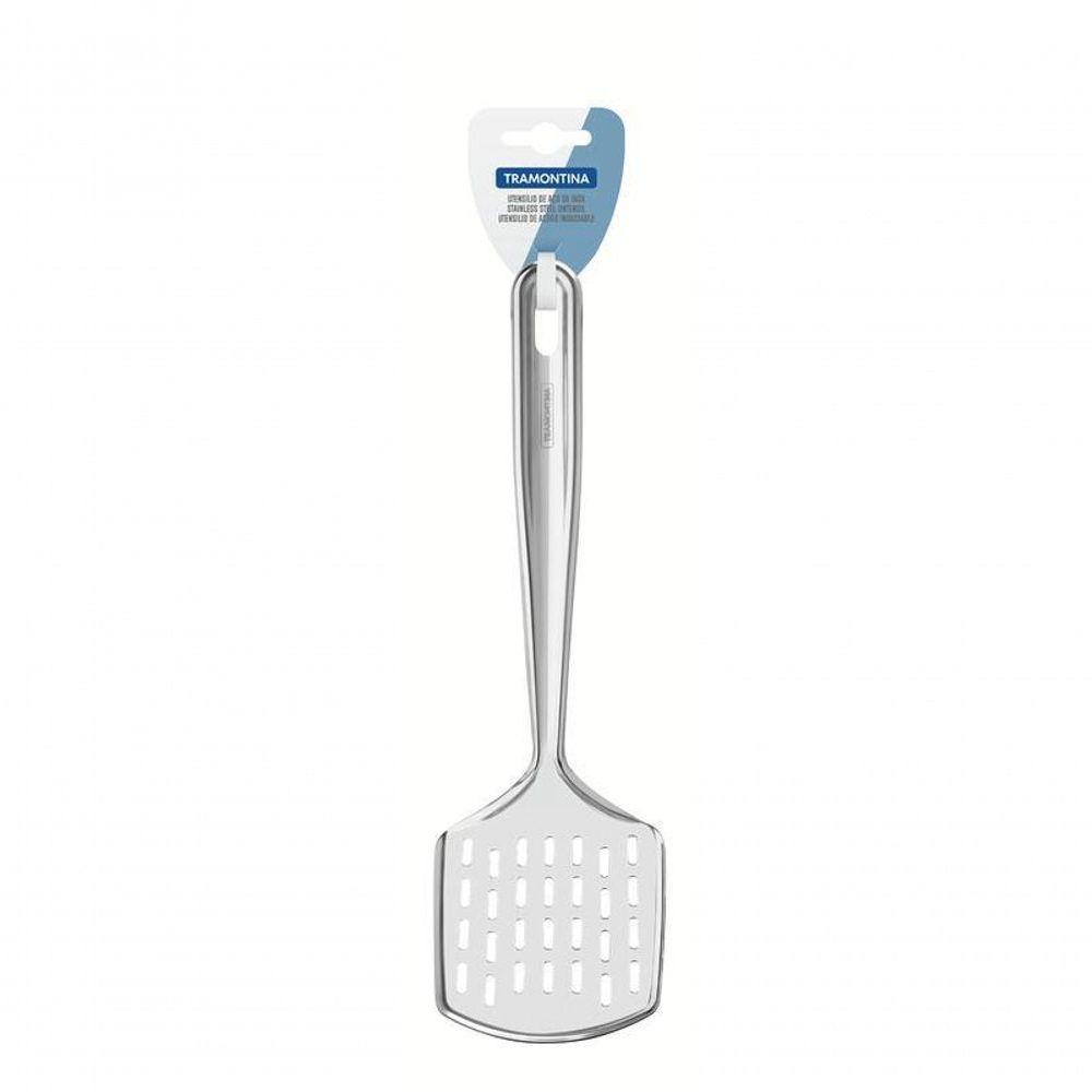 Espumadeira Aço Inox Extrata TramontinaEspumadeira Tramontina Extrata em Aço InoxA Espumadeira Tramontina em Aço Inox Acabamento Brilho da linha Extrata trará para a sua cozinha ainda mais praticidade para a execução das suas receitas favoritas, além de todo o glamour que você encontra em cozinhas profissionais. Produzida completamente em aço inox, ela é a opção certa para quem busca se aventurar no universo gastronômico, o seu cabo conta com furo, que permite que você possa exibir seus utensílios favoritos, agregando na decoração e facilitando o uso diário.Informações Gerais:Totalmente feita de aço inox, por isso não solta nenhum resíduo nos alimentos, mantendo-os saudáveis.Altamente durável, mantém suas características originais, preservando a beleza, a higiene e a durabilidade do material.Possui furo no cabo, o que permite incluí-la na decoração da cozinha.Pode ser lavada diariamente na máquina de lavar louças.Uso Seguro e Obrigatório:Durante a lavagem, use apenas sabão ou detergente e uma esponja macia. Outros tipos de produtos, como palha de aço, poderão riscar ou prejudicar o brilho dos talheres.Enxágue bem cada peça a fim de remover totalmente os resíduos dos produtos de limpeza, pois, por serem abrasivos, podem prejudicar o inox.Sempre que possível, use água quente, pois renova o brilho do talher.Após a lavagem, enxugue imediatamente os talheres, caso contrário, as substâncias químicas da água (cloro) poderão causar manchas.Evite atrito entre os talheres durante o processo de lavagem e no armazenamento, para mantê-los sem riscos.Evite o contato das peças com superfícies quentes. Elas provocam a descoloração do produto.Não guarde os talheres em locais úmidos. A umidade também provoca manchas.Ao usar a lava-louça, recomendamos retirar os talheres logo que tenha terminado o ciclo ''enxaguar'', a fim de que sejam secados manualmente.Garantia: 90 dias contra vícios ou defeitos de fabricação.