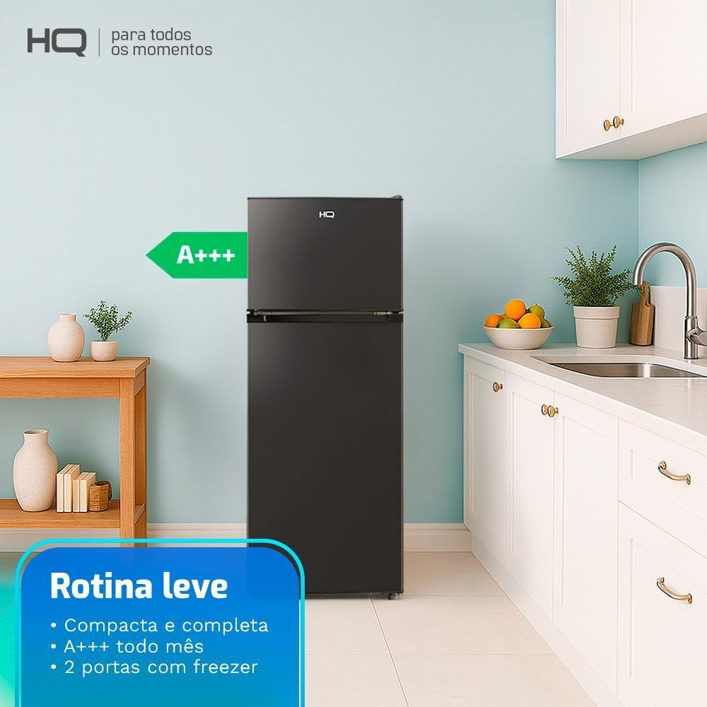 Geladeira Refrigerador HQ Defrost 230 Litros Preto HQ-230RDF 110VGeladeira Refrigerador HQ Defrost 230 Litros Preto HQ-230RDFA Geladeira Refrigerador HQ-230RDF entrega o equilíbrio que casais e famílias pequenas procuram: 230 L totais — 172 L no refrigerador e 58 L no freezer — em um corpo de 55 × 55 × 140 cm que se encaixa na maioria dos projetos sem ajustes.O selo A+++ e o consumo de 13,38 kWh/mês mantêm o custo sob controle, enquanto o Defrost (manual) assegura manutenção simples. Com R600a e ciclopentano, a eficiência vem acompanhada de materiais com menor impacto. Praticidade, espaço e economia — na medida certa.Por que isso importa no dia a dia?- Conta de luz sob controle: A+++ e 13,38 kWh/mês.- Capacidade bem distribuída: espaço para abastecer a semana.- Encaixe sem dor de cabeça: Design compacto.Destaques técnicos e funcionais- 230 L totais (172 L refrigerador | 58 L freezer).- Degelo: Defrost (manual).- Gás refrigerante sustentável: R600a e ciclopentano.- Tensões: 127 V ou 220 V | 60 Hz | não é bivolt.Cenários de uso- Geladeira principal para 2–3 pessoas.- Rotina de compras semanais com uso frequente de freezer.- Studios, apartamentos pequenos e quitinetes: geladeira principal que realmente cabe.- Rotina de compras curtas: hortifrúti fresco e um freezer que dá conta do recado.- Espaços multifuncionais: apoio para home office/varanda gourmet.Orientações de uso- Ventilação: deixe folgas laterais e traseiras.- Primeiro uso: aguarde repouso pós-transporte e resfriamento completo.- Nivelamento: ajuste pés para melhor vedação e estabilidade.Facilidade de limpezaHigienização rápida com pano macio e sabão neutro; prateleiras/gavetas removíveis. No degelo, desligue, aguarde e seque.SegurançaUse tomada exclusiva e aterrada; evite adaptadores/benjamins. Desconecte da rede antes de limpeza/manutenção.SustentabilidadeR600a + ciclopentano - eficiência energética com menor impacto. Descarte responsável ao fim da vida útil.Itens na embalagem1 Geladeira HQ-230RDF + 1 Manual de Instruções.Especificações técnicasMarca: HQModelo: HQ-230RDFCor: PretoCapacidade total: 230LCapacidade do Refrigerador: 172LCapacidade do Freezer: 58LDegelo: ManualClasse energética: A+++Consumo mensal: 13,38 kWh/mêsRefrigerante: R600aIsolante: CiclopentanoVoltagem: 127V ou 220V (não é bivolt)Frequência: 60 HzClasse climática: TDimensões e Peso do ProdutoAltura: 140 cmLargura: 55 cmProfundidade: 55 cmPeso: 41 kgGarantia01 Ano (Sendo 3 meses de garantia legal e mais 9 meses de garantia para defeito de fabricação).Produto: Refrigerador | Marca: HQ | Modelo: HQ-230RDF | Cor: Preto | Tensão Elétrica: 127V | Voltagem: 220V | Quantidade de Portas: 2 | Tipo de Geladeira: Duplex | Tipo de Degelo: Manual | Com Freezer: Sim | Altura (cm): 140 | Largura (cm): 55 | Profundidade (cm): 55 | Peso do Produto: 41 | É frigobar: Não | Capacidade: 230 | Voltagem: 127V