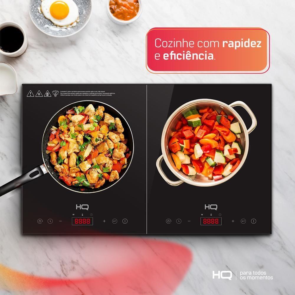 Cooktop De Indução HQ 2 Bocas Portátil 3500W Preto HQ-IDS3502 220VCooktop de Indução HQ 2 Bocas Portátil 3500W Preto HQ-IDS3502Cooktop de Indução Portátil HQ: tecnologia, eficiência e design para todos os momentos!O Cooktop de Indução Portátil HQ-IDS3502 é a escolha ideal para quem busca praticidade, desempenho e estilo. Compacto e eficiente, ele entrega 3500W de potência total, distribuída entre suas duas zonas de aquecimento independentes: 2000W na zona esquerda e 1500W na zona direita.Seu painel digital touch proporciona um controle intuitivo para ajuste de temperatura entre 60°C e 240°C, enquanto o temporizador programável de até 3 horas oferece mais conveniência e segurança. Com acabamento vitrocerâmico resistente, o cooktop combina durabilidade e sofisticação, adaptando-se perfeitamente a cozinhas modernas e compactas.· Alta Potência Total: 2000W na zona esquerda e 1500W na zona direita.· Painel Digital Touch: Ajuste de potência e temperatura com precisão.· Temporizador Programável: Controle completo para um preparo seguro e eficiente.· Design Compacto e Portátil: Dimensões, ideal para pequenos espaços.· Material Resistente: Acabamento em vitrocerâmico fácil de limpar e durável.· Leve e Prático: Peso de apenas 4,1 kg, facilitando o transporte e instalação.O Cooktop HQ é sinônimo de modernidade e eficiência, ideal para transformar sua cozinha e oferecer praticidade para todos os momentos.Especificações TécnicasMarca: HQCor: PretoVoltagem: 220VFrequência:60HzPotência: 3500W (duas zonas independentes (2000W e 1500W).Painel: touch screenZonas: 2Material:VitrocerâmicoInstalação: portátilMateriais e Eficiência- Vitrocerâmico resistente, fácil de limpar e durável.Dimensões externas(LxPxA): 58 x 37 x 4,5 cmPeso: 4,1 kgGarantia12 Meses (Sendo 3 meses de garantia legal e mais 9 meses de garantia para defeito de fabricação.