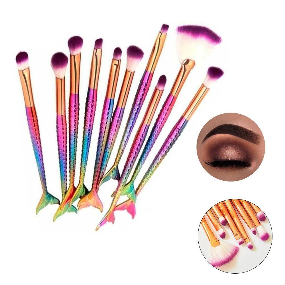 Pincel Sereia Kit 10 Peças Mermaid Maquigem Make Up