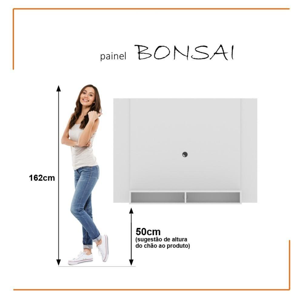 Painel 43 Polegadas Suspenso Com Nichos Bonsai - BrancoO Painel Bonsai é a peça ideal para sua sala, projetado para aliar praticidade e beleza nos seus momentos de lazer. Perfeito para receber amigos ou relaxar em frente à , ele oferece uma solução organizada e moderna para o seu ambiente. Sua estrutura é feita em MDP com pintura UV de alta qualidade e conta com dois nichos e um tampo de 25mm, espaços ideais para seus aparelhos eletrônicos e objetos de decoração.*Atenção - ilustrativa de 32*Dimensões:Largura: 120 cmAltura: 86 cmProfundidade: 23 cmPeso 14 kgEspecificações Técnicas:Produzido em MDP e MDFAcabamento em Alto brilho com pintura UV;2 Nichos;Não possui Gavetas;Não possui Portas;Montagem necessária do produto;Observações Importantes:Ao receber seu pedido Verifique a embalagem. Caso note qualquer ou sinal de violação, por favor, recuse o e conosco imediatamente.Responsabilidade da : Nossas são realizadas no térreo. Não nos responsabilizamos pelo do produto por escadas ou elevadores.Montagem: A montagem do produto é de responsabilidade do cliente. Para garantir a qualidade e a sua , recomendamos fortemente a contratação de um montador . Não cobrimos danos causados por erros de montagem.Faltou alguma peça? Se notar a falta de qualquer peça ou acessório, conosco. Enviaremos o item necessário sem nenhum custo adicional para você. Ambiente Principal: Sala de Estar | Largura: 120 cm | Complexidade da Montagem: Média | Pessoas necessárias para montagem: 1 | Altura: 86 cm | Profundidade: 23 cm | Suporta até: 30 kg | Possui iluminação Não | Medida máxima para : 43 polegadas | Origem do produto | Necessita montagem: Sim | Possui portas: Não Possui Portas | Possui gavetas: Não Possui Gavetas | Quantidade de caixas de embalagem: 1 | Possui prateleiras?: Não Possui Prateleiras | Possui nichos?: Possui 2 nichos | Possui espelhos?: Não Possui Espelhos | Possui vidro?: Não Possui Vidro | Modelo Bonsai; Estante; Painel; Sala de Estar; Quarto; Royal; | Marca: ViaNossa; ViaNossa Móveis; EDN Móveis; Bonsai; Royal | Material: MDP e MDF | Formato do móvel: Painel | Acabamento Pintura UV | Tempo de garantia: 3 meses | Tipo de garantia: Fabricante | Inclui manual de montagem: Sim Branco