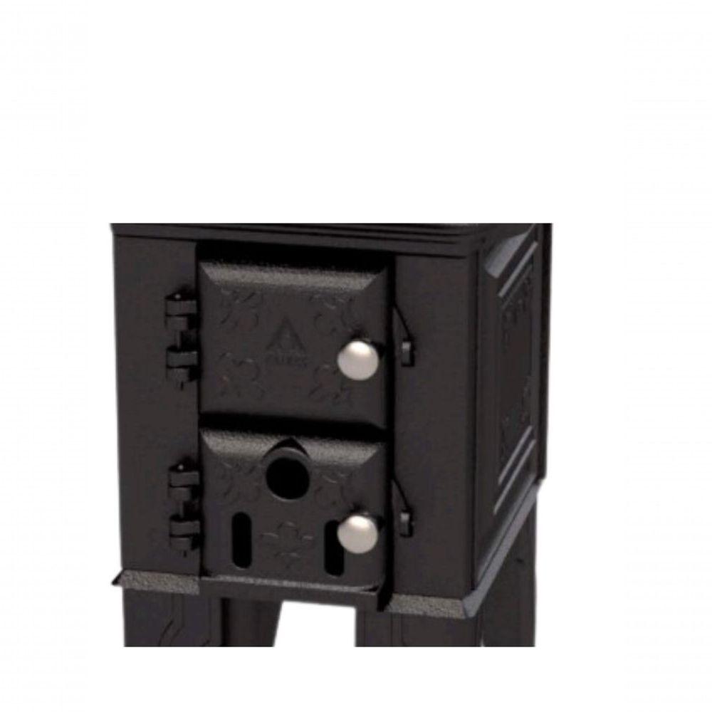 Estufa Fogão à Lenha Ferro Fundido Campeiro Colonial AntigoEstufa Fogão À Lenha Ferro Fundido Campeiro Colonial AntigoA estufa de ferro fundido é um equipamento utilizado para aquecimento de ambientes, conhecido por sua durabilidade e capacidade de reter calor de forma eficiente. Construída em ferro fundido, essa estufa é robusta e resistente a altas temperaturas, o que garante uma longa vida útil. Além de ser funcional, possui um design clássico que pode adicionar um toque de elegância e charme rústico a qualquer espaço. A estufa de ferro fundido é frequentemente utilizada em ambientes domésticos e comerciais, proporcionando aquecimento eficiente e confortável, ideal para climas frios e para criar uma atmosfera aconchegante.MEDIDAS:ALTURA COM OS PÉS: 62CMALTURA SEM OS PÉS: 34CMPROFUNDIDADE: 44CMLARGURA: 37CMSAÍDA DA CHAMINÉ: 95MMTAMANHO DA CHAPA: 37X44CMFURO DA CHAPA DO FOGÃO: 185MMPESO: 42KGCARACTERÍSTICAS DO PRODUTO:- Todo em ferro fundido;- Chapa do fogão em ferro fundido preto;- Puxadores cromados;- Compartimento para depósito das cinzas;- Pintura resistente à alta temperatura na cor preta;- Pés removíveis;- Saída da fumaça atrás do fogão com registro.- Possui revestimento para evitar corrosão, já que o ferro também pode ser por ácidos.
