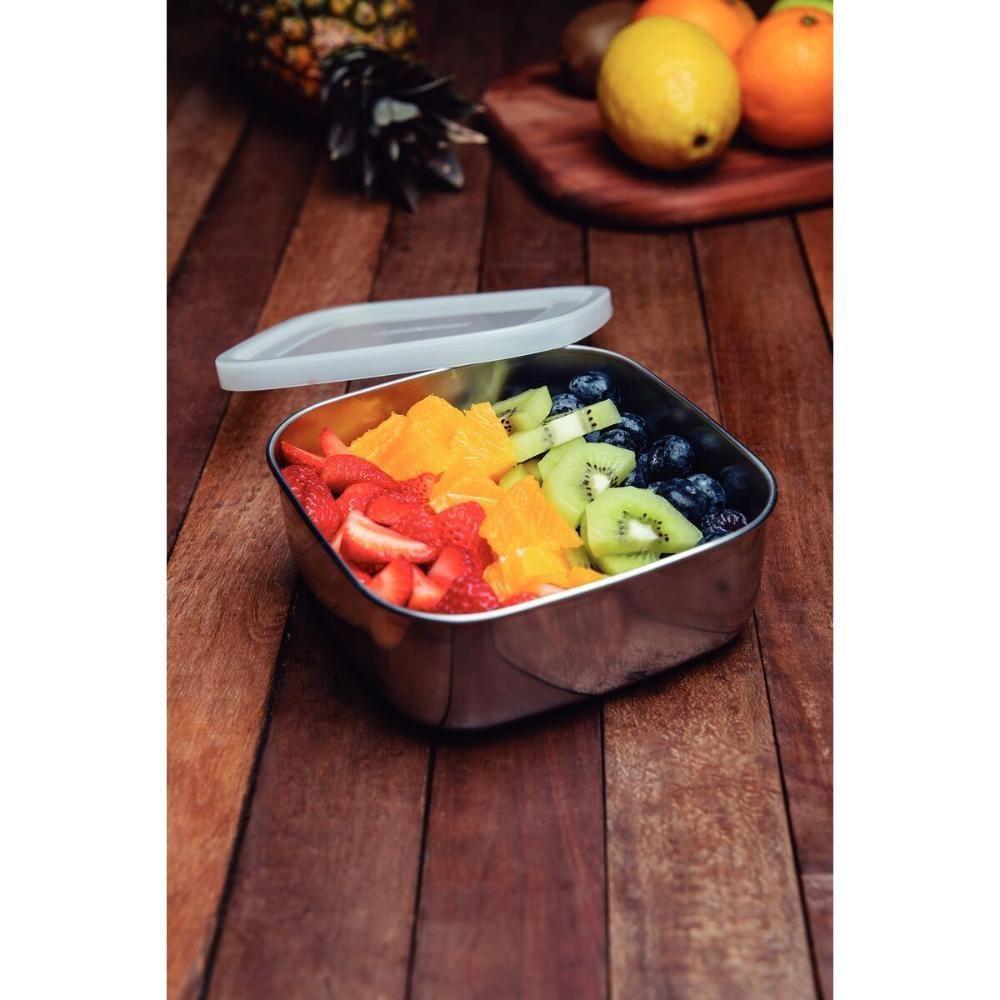 Jogo De Potes Tramontina Freezinox Quadrados Em Aço Inox Com Tampa Plástica 3 Peças