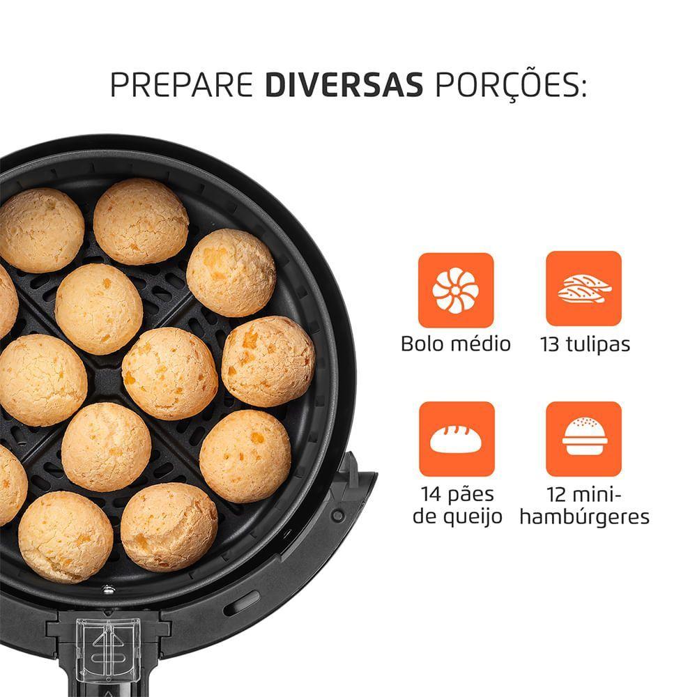 Fritadeira Sem óleo Air Fryer Pratic 3,6L Mondial AF-36-BI 110V/60HZAcrescente praticidade e saúde à sua rotina diária com a Air Fryer Mondial AF-36-BI. A Tecnologia de Circulação de Ar Quente cozinha, frita (a ar), assa e tosta os alimentos sem precisar adicionar óleo ou manteiga. Além disso, a alta potência proporciona rapidez no preparo das receitas. A Air Fryer possui capacidade de 3,6 litros e o cesto é revestido com antiaderente Duraflon, e os alimentos não grudam no fundo. Saiba mais sobre a AF-36-BI:PRATICIDADE + RAPIDEZ NA COZINHA: A tecnologia de Circulação de Ar Quente e a alta potência possibilitam rapidez no preparo das receitas e praticidade em sua rotina na cozinha.CAPACIDADE: 3,6 LITROS: Considerado o cesto com a maior área plana da categoria*, ele é espaçoso para acomodar os alimentos.*Comparativo realizado com todos os modelos de Air Fryer tipo original do mercado até Agosto/2022.DESIGN COMPACTO: A Air Fryer Mondial tem um design compacto e ocupa espaço reduzido na bancada da cozinha.ANTIADERENTE: O cesto possui o antiaderente Duraflon, e os alimentos não grudam no fundo.ALIMENTAÇÃO + SAUDÁVEL: Por não precisar de óleo ou manteiga no preparo das receitas, a Air Fryer permite uma rotina alimentar com mais sabor e saúde.FÁCIL DE LIMPAR: A limpeza da parte interna é fácil, pois a cuba e o cesto são removíveis e antiaderentes.CONTROLE DE TEMPERATURA ATÉ 200°C: Permite a escolha da temperatura ideal para diferentes tipos de alimentos.TIMER DE 60 MINUTOS: Facilidade e comodidade de selecionar o tempo necessário de preparo das receitas. A função Timer proporciona a liberdade para você se dedicar a outras tarefas enquanto a Air Fryer trabalha para você.AVISO SONORO + DESLIGAMENTO AUTOMÁTICO: Após o tempo predefinido no Timer, há um aviso sonoro e a fritadeira desliga automaticamente.MUITO ALÉM DE BATATA FRITA: A Air Fryer é versátil e permite que você prepare pratos que vão muito além da clássica batata frita. É possível preparar legumes, carnes, peixes, lasanha, pizzas, além de pratos doces, como pudim, bolo de chocolate e cookies. Use sua criatividade para fazer receitas deliciosas!UM ANO DE GARANTIA MONDIAL: A Mondial é a escolha de milhões de consumidores. Mondial, a escolha inteligente!Modelo - AF-36-BICor - Preto/InoxVoltagem (Tensão) - 127V/220VItens inclusos - 01 Fritadeira; 01 Livro de Receitas e 01 Manual de InstruçõesCapacidade - 3,6lPotência - 1500WTemperatura - 80°C até 200°CTimer - 60 minutosAção do produto - Assar, gratinar e fritar seus alimentosTipo de alimentos que comporta - Prepara petiscos, carnes, pastéis, pão de queijo, churros, peixes entre outrosRevestimento antiaderente - SimSegurança - SimTipo de fritadeira - Fritadeira ElétricaLuz indicadora - SimDimensões do produto - 33,00cm x 27,60cm x 32,00cm (AxLxP)Peso do produto - 3,60kgTipo de tomada (amperes) - 20AGarantia - 1 AnoMarca - Mondial
