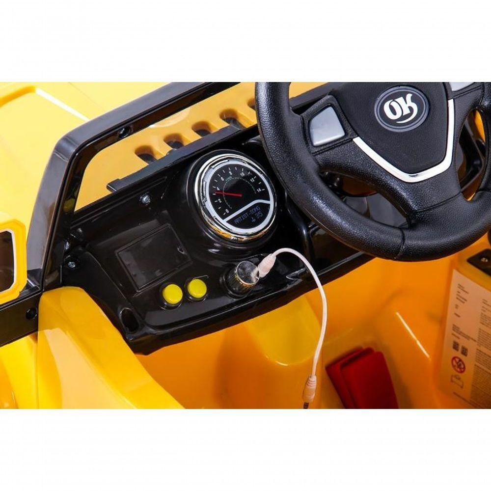 Jipe Elétrico Trilha 12v Infantil Amarelo Bel Lazer Direção com 2 botões 1 para buzina e outro tocar música infantil Entrada para ipod / Mp3 Botão de Liga/Desliga Botão de seleção para escolha de uso pelo controle ou pela criança Pode ser controlado pela criança ou por um adulto através do controle remoto Pedal para que a criança possa acelerar Cinto de segurança para prender a criança Especificações: Idade Recomendada: Acima de 3 anos Capacidade: Até aprox. 30 Kg. 2 Velocidade: 2.5 km/H - 2.5 ~ 5 Km/H Carregador: Entrada 100 – 240 VAC 0,3A 50/60HZ Carregador: 12 VDC 1000mA Fusível: 4 A e 13 A Tempo de carga: Entre 8 - 12 Horas. 2 Bateria: 6V 4Ah e 6V 7 Ah Controle remoto funciona com 2 pilhas AA (Não Incluidas) Tamanho: 110 X 61 X 63 Ref. 927600 - Amarelo Quantidade por caixa: 1 unidade. NA