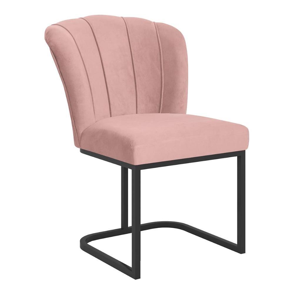 Cadeira Jantar Flor Mesa Cozinha Reforçada Base Metal Preta Rosa