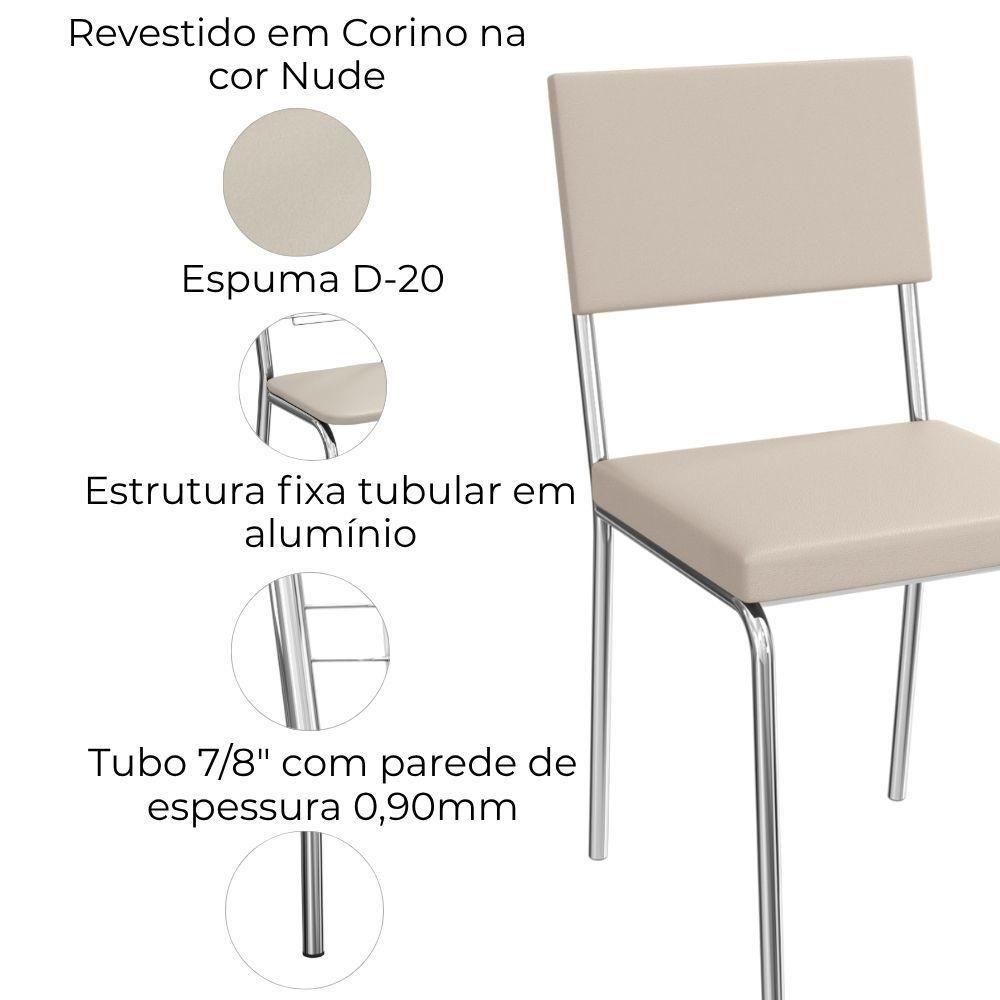 Kit 2 Cadeiras Cromada Sala Jantar 2c128cr Corino Kappesberg Nude