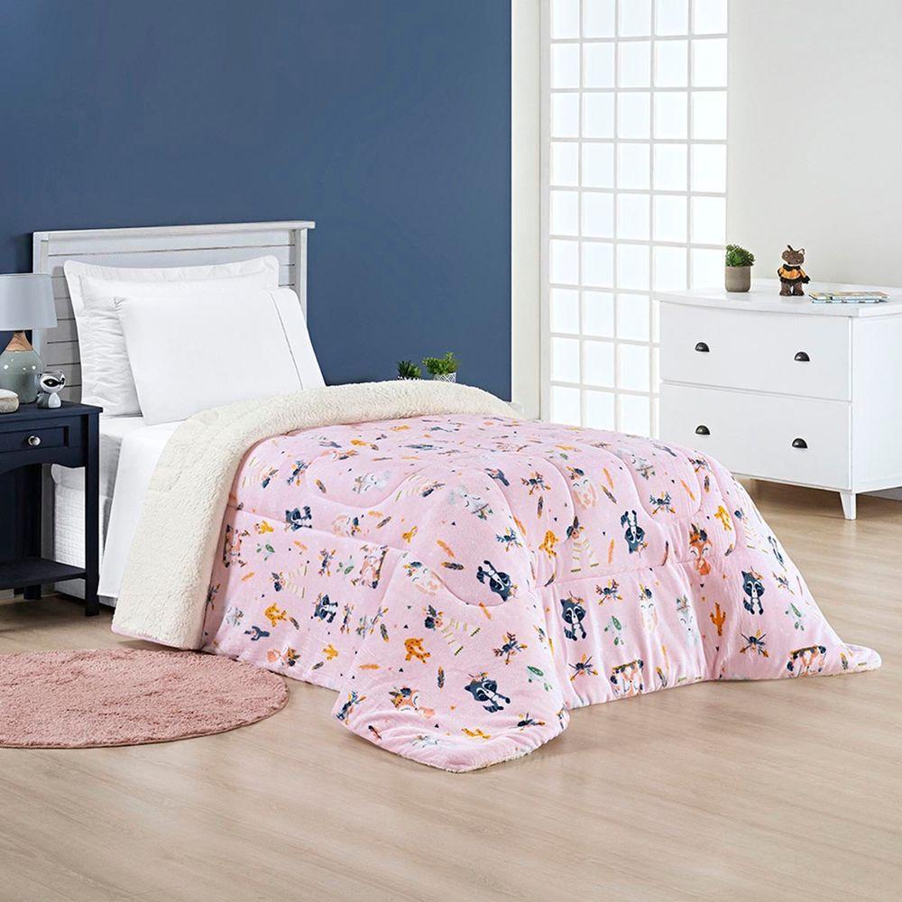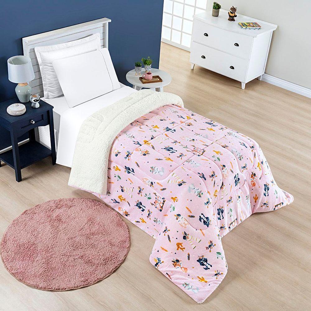 Coberdrom Cobertor Lutti Solteiro Quarto Cama Infantiil Sherpa Manta Toque Lã De Carneiro Foxy Raposinha RosaCoberdrom Solteiro Lutti Kids: Maciez que abraça, magia que aquece.Transforme o quarto das crianças em um espaço cheio de cor, imaginação e aconchego. O Coberdrom Lutti Kids foi criado para trazer alegria ao ambiente, com estampas exclusivas que encantam e dão vida ao quarto infantil.O Coberdrom Lutti Kids é dupla face e oferece dois tipos de aconchego em uma única peça. De um lado, a manta flannel proporciona toque macio e quentinho. Do outro, a sherpa fofinha envolve como um abraço, perfeita para os dias mais frios. Juntas, essas texturas criam uma combinação irresistível de conforto, leveza e bem-estar.Cada detalhe foi pensado para unir praticidade e beleza no dia a dia. O Coberdrom Lutti Kids tem acabamento caprichado, caimento confortável e gramatura ideal para manter o calor sem perder suavidade, tornando as noites mais aconchegantes e acolhedoras.Contêm na embalagem:01 Coberdrom Solteiro: 2,40m x 1,50mComposição:Manta Microfibra Flannel: 100% PoliésterTecido Sherpa: 100% PoliésterEnchimento: 100% PoliésterGramatura da Manta (Enchimento): 150 g/m²Características do Produto:- Dupla face com flannel macia e sherpa fofinha.- Toque ultramacio e sensação aconchegante.- Acabamento reforçado e caimento confortável.Benefícios:- Deixa o quarto infantil mais colorido, divertido e acolhedor.- Garante conforto e aquecimento em noites mais frias.- Permite variar o visual da cama com facilidade.- Perfeito para acompanhar o ritmo e a imaginação das crianças.Atenção: As cores do produto podem sofrer pequenas variações devido à configuração da tela do seu dispositivo.
