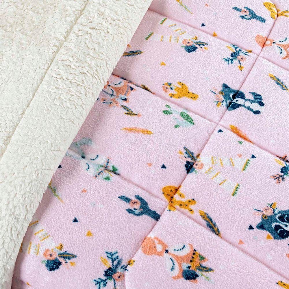 Coberdrom Cobertor Lutti Solteiro Quarto Cama Infantiil Sherpa Manta Toque Lã De Carneiro Foxy Raposinha Rosa