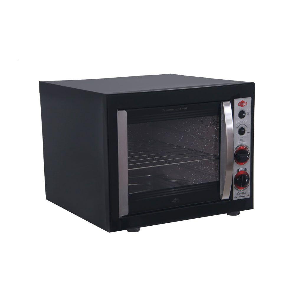 Forno Elétrico Layr 46 Litros Cristal Black Com Timer Preto 220VForno Eletrico Layr 46 Litros Cristal Black Com Timer AutolimpanteCaracteristicas do produto:Capacidade: 46 litrosConsumo: consumo maximo a 300 1 kw/hPotencia: 1750 watsGabinete externo em acabamento pretoGabinete interno com revestimento em auto limpanteFrontal em aco inoxidavelTermostato de precisao 50 a 300 c2 resistencias blindadasPuxador em aco inoxTimer de 0 a 120 minutosTecla multi funcaoPorta removivel de vidro em cristal temperadoIsolamento termico reforcado com la de vidroLampada interna com vidro protetorUma prateleira removivelPainel em braileInstalacao eletrica certificada Selo inmetroBandeja de residuoDimensoes do produto:Altura: CMLargura: CMProfundidade: CMPeso: 11,15 kgGarantia do fornecedor: 12 meses