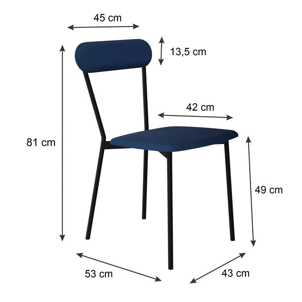 Cadeira Vintage Emília Fixa C/4 Pes 450 X 505 X 810 Mm C/2 Jeans Azul Jeans CitySobre o ProdutoCadeira Fixa Estofada Vintage Emília C/02 Un. çoDescrição do Produto:A Cadeira Vintage Emília traz um charme nostálgico, preservando um design compacto e acolhedor. Sua estrutura metálica reforça o estilo retrô, enquanto as opções de cores e materiais oferecem versatilidade para compor ambientes com personalidade. É uma peça assinada pelo designer Hakim Hazim, ideal para quem busca funcionalidade com um toque de memória Linha Vintage é uma coleção que traz uma forte carga de memória afetiva, inspirando-se nas clássicas cadeiras de cozinha dos anos 1920 a 1960. Esta releitura mantém o tamanho compacto e o conforto das , sendo ideal para cozinhas, pequenas salas, cafeterias e bistrôs. Com seu estilo marcante retrô, ela está disponível em diversas opções de acabamento, permitindo coordenar com outros estilos e reforçar o conceito nostálgico e elegante do design vintage, assinado pelo designer Hakim Inclusos:1 Conjunto C/02 CadeirasDimensões dos Produtos:Cadeira Fixa Estofada Vintage Emília C/02 Un. ço: 42,5 x 50,5 x 83 cmInformações Logísticas (Comp. X Prof. X Alt.) 81 x 65 x 18,5 cm - Peso: 10,03 KgPeso Total: 10,03 KgObservações:Não acompanha acessórios decorativos. Imagens meramente ilustrativas.Informações Técnicas / Características:- Cor do Produto: ço- Cor do Predominante: Revestido- Marca: Metalig- Modelo: Linha: Vintage- Material Principal / Composição: Aço/Madeira Multilaminada/MDP/Espuma/Tecido- Material / Estrutura do Encosto: MDP- Material da Estrutura / Pés: Aço- Acabamento Estrutura: Epóxi-Pó- Tipo do Encosto: Fixo- Revestimento Encosto: Tecido- Tipo do Assento: Fixo- Material / Estrutura do Assento: MDP- Enchimento Assento: Espuma D-28- Revestimento Assento: Tecido- Possui Braços: Não- Tipo: Cadeira- Modelo: Fixo- Empilhável: Não- Dobrável: Não -Ambiente Principal: Sala de Estar / JantarDesign Assinado: Hakim Hazim-Estilo: Vintage- Enchimento Encosto: Espuma D-22 - Suporta Até (kg): 120kg- Comprimento: 42,5cm- Profundidade: 50,5cm- Altura: 83cmAltura do Assento até o chão: 47,5cm- Altura do Encosto até o chão: 60cm- Dimensões do Assento: 42,5x42,5x4,0cmcm- Dimensões do Encosto: 45x13,5x3,5cmcm- Peso Lí.: 8,87Kg- Recomendações de Uso, Manutenção e Limpeza: Para a limpeza, utilize flanela seca ou pano macio levemente umedecido em água. Utilize um pano seco em seguida. Evite com produtos químicos (solventes, thinner, acetona, etc) e não utilize nenhum tipo de esponja de aço.- Necessita de Montagem: Sim / Acompanha Manual de Montagem- Complexidade da Montagem: Média: pode ser montado por mais de uma pessoa e/ou necessite de maior conhecimento para montagem.- Garantia: 6 meses Aço/Madeira Multilaminada/MDP/Espuma/Tecido: Enchimento Encosto | Espuma D-22: Material da Estrutura/Pés | Aço: Enchimento Assento | Espuma D-28: Acabamento da Estrutura | Epóxi-Pó: Quantidade máxima de pedido | 1: Suporta até (Kg) | 120: Necessita montagem | Sim: Marca | Compace: Modelo | Cadeira Vintage Emília Fixa: | Produto: Cadeira | Cômodo indicado: Salas | Cor: Multicolorido | Tonalidade: Multicolorido | Altura: 81 | Comprimento: 45 | Largura: 50,5 | Peso: 8,87 | Coleção: Industrial | Requer Baterias: Não | Certificação Externa: Não aplicável | Componentes inclusos: Manual de montagem e kit acessórios | Preço de tabela: | Compace | do Modelo: | de Caixas: 1 | de Itens: 1 | da Peça: | Material da estrutura: Aço | Is Fragile: false | Componentes incluídos: Manual de montagem e kit acessórios | Certificação de teste externa: Não aplicável | Principais Características do Produto 1: Tipo do Encosto: Fixo Anatômico | Palavras-chave de Pesquisa: Não aplicável | Principais Características do Produto 2: Enchimento do Assento: Espuma D-28 | Fabricante: Compace | Baterias são necessárias?: false | Principais Características do Produto 0: Estrutura do Assento: MDP | Exige montagem: true | Dimensões do item P x L x A: ;depth#unit=centimeters;height#value=83;height#unit=centimeters;;width#unit=centimeters | Peso do item: ;unit=kilograms | do modelo: | Quantidade de itens: 2 | de caixas: 1 | da peça: