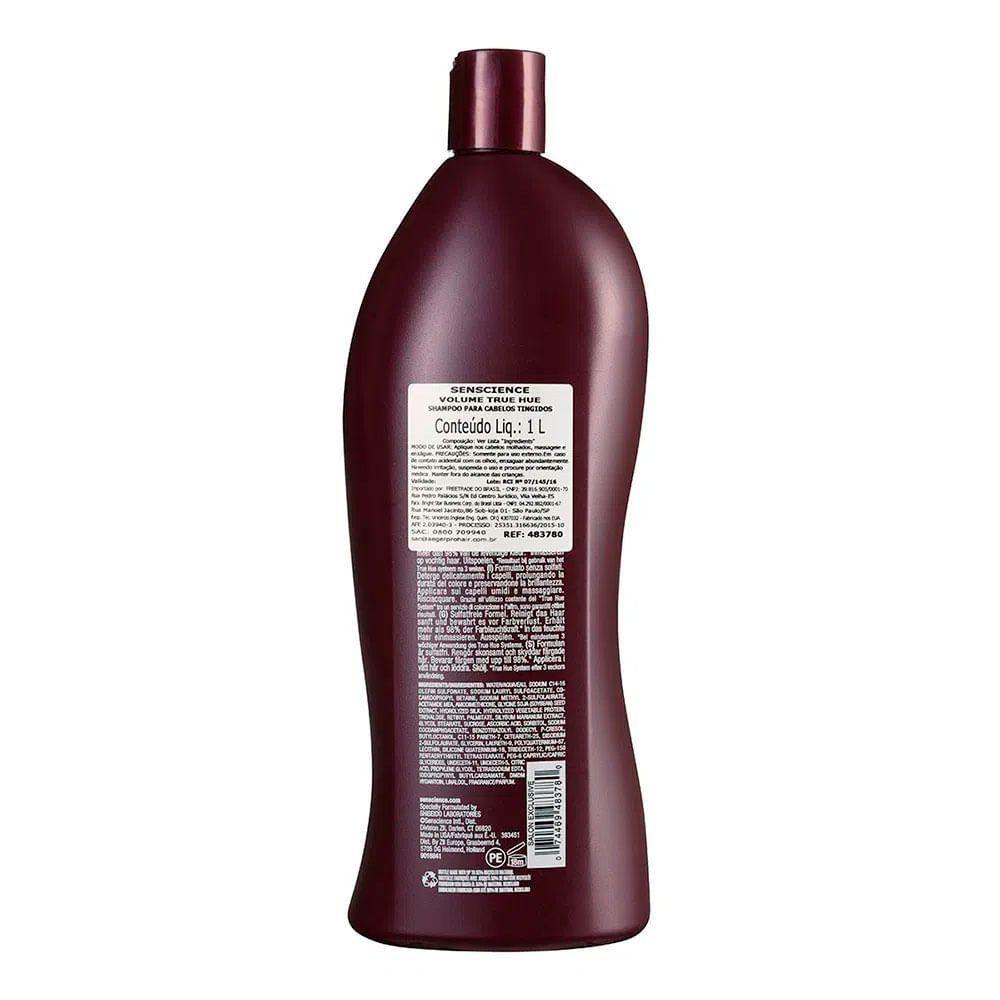 Senscience True Hue - Shampoo 1000mlO shampoo Senscience True Hue é sem sulfato, limpa sem agredir os fios, ajuda a condicionar os fios, protege dos raios solares e o uso contínuo preserva até 98% da coloração. Além disso, é perfeito para cabelos naturais ou coloridos.Senscience True Hue - Shampoo possui uma poderosa e conta com ação de Protetores UV que mantêm o cabelo protegido da radiação solar que oxida os fios e assim, causa o desbotamento ou a alteração da cor. Silicones Condicionantes que proporcionam maciez e brilho sem se acumular nas fibras capilares.Senscience True Hue - Shampoo deixa o seu cabelo limpo, maleável, com o brilho preservado por mais tempo, protegido e com a cor preservada por muito tempo.Dica de Aplicação:Molhe o cabelo e aplique o shampoo, massageando para criar espuma. Enxágue abundantemente e caso necessário, repita o procedimento. Para um cuidado ainda mais completo, utilize também o condicionador True Hue.Contém:Senscience True Hue - Shampoo 1000mlTipos de Cabelo - Coloridos ou com MechasPropriedades - Sem Sulfato