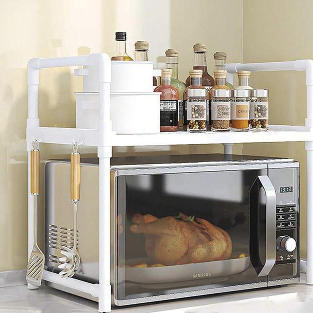Suporte Rack Microondas Organizador Cozinha Prateleira Gancho Talher Louça Tempero Balcao Armario Compacto Pia Multiuso