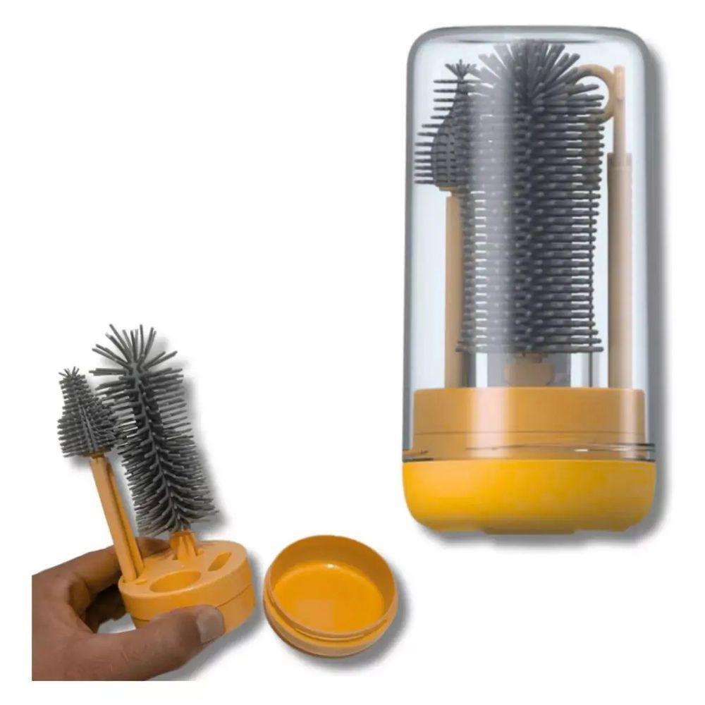 Kit Escova De Limpeza 4 Em 1 Mamadeira Garrafa Copo Bebe Criança Higiene Limpeza Bolsa Passeio ViagemMantenha a higiene dos itens do seu bebê com o Kit de Escovas Silicone 4 em 1! Este kit é a solução perfeita para a limpeza de mamadeiras, garrafas e copos, garantindo uma limpeza eficiente e prática. Ideal para a utilização diária, perfeito para levar na bolsa, em viagens. Este conjunto compacto é fácil de transportar e usar onde quer que você esteja.Versatilidade 4 em 1: Inclui escovas de diferentes tamanhos e formatos, permitindo a limpeza completa de diversos itens, desde mamadeiras até copos e garrafas.Material de Silicone: Feito com silicone, as escovas são duráveis, flexíveis e não danificam os objetos durante a limpeza.Portátil e Prático: Com design compacto, o kit é fácil de levar em viagens, garantindo que você tenha sempre à mão a ferramenta certa para a higienizar os itens.Acessórios Completos: O conjunto vem com todos os acessórios necessários para uma limpeza eficiente e profunda, facilitando a sua rotina.Fácil de Usar e Limpar: As escovas possuem cabo ergonômico e proporcionam uma pegada confortável, além de serem fáceis de lavar após a utilização.Benefícios:Higiene Garantida: Mantenha as mamadeiras e copos do seu bebê sempre limpos e livres de resíduos, protegendo sua saúde.Economia de Tempo: A praticidade do kit permite uma limpeza rápida e eficiente, economizando seu tempo.Durabilidade: O material de silicone, garante que as escovas tenham uma longa vida útil, sendo um investimento duradouro.Características:Kit Escovas de LimpezaMamadeira, Garrafa, Copo4 em 1CompactoPraticoSeguroResistentePortátilProduto livre de BPAMaterial: Silicone e ABSCor: AmareloDimensões Aproximadas:Do Suporte de ArmazenamentoComprimento: 16cmLargura: 8cmConteúdo da Embalagem:1Suporte de Armazenamento para as escovas1 Escova de Silicone1 Escova para Bico de Mamadeira1 Mini Escovinha1 Frasco Dispenser3 Meses de Garantia Contra Defeito de Fabricação**255 MOD: BSL3805