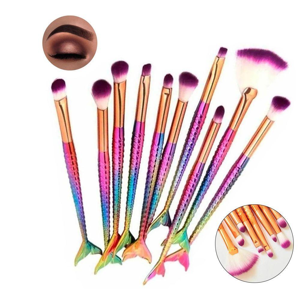 Pincel Sereia Kit 10 Peças Delineador Corretivo Sombra Ilumi