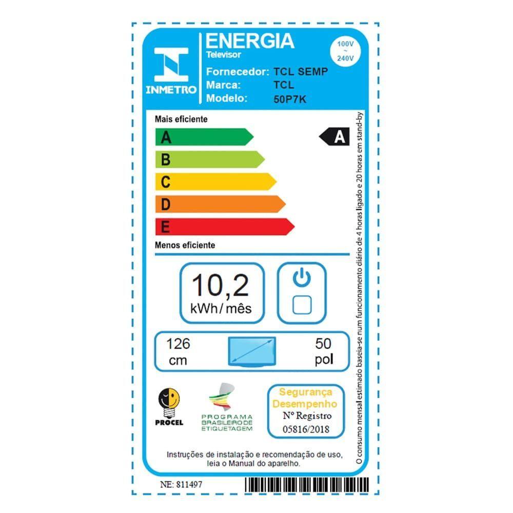 Smart TV TCL QLED 50 4K 50P7K Comando De Voz
