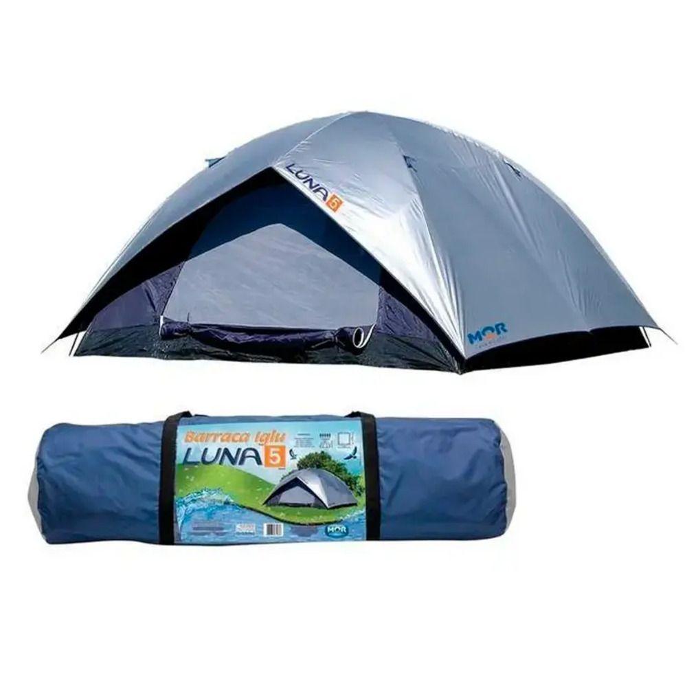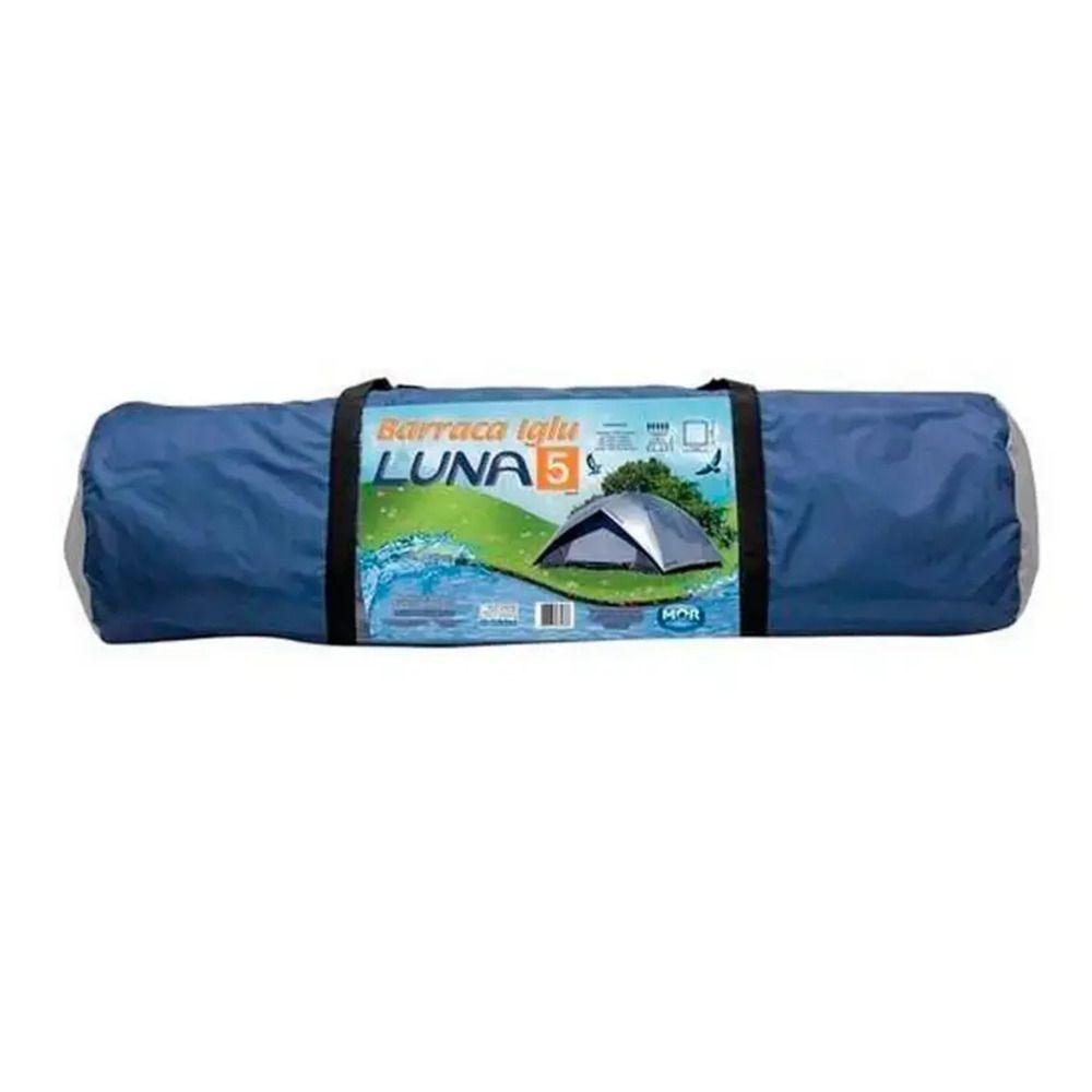 Barraca 5 Lugares Luna - 9038.BARRACA LUNA 5 PESSOAS MOR POLIÉSTER COM SACOLA PARA TRANSPORTECom a Barraca Luna da Mor, seu camping terá muito conforto e a diversão será garantida. Ela acomoda até 5 pessoas e possui proteção extra contra vazamentos de água garantindo conforto e segurança. Confira mais detalhes:EstruturaProduzida em poliéster, ela conta com mosquiteiro na porta, teto e janela traseira proporcionando uma melhor circulação do ar, e também local para pendurar lanterna e FPS 100. Além disso, seu sobreteto cobre toda a barraca e é revestido em silvercoating, material em cor prata que deixa a barraca mais bonita e reflete a luz solar, diminuindo o calor no interior. E mais! Acompanha sacola para você levar para onde quiser sua barraca e curtir momentos inesquecíveis.Caracteristicas:Marca: MorReferência: 9038.Modelo: LunaQuantidade de pessoas: 5Teto aluminizado: Sim.Sobreteto aTé o chão: simMosquiteiro: Na portaSuporte para lâmpada: simSacola para transporte: simVolume de coluna d?água: 800 mm.Material: Tecido: Poliéster com silvercoating; Piso: Polietileno; Varetas: fibra de vidro.Tipo de barraca: Iglu.Dimensões do Produto:Altura: 130, cmLargura: 240,0 cmProfundidade: 240,0 cmPeso: 3,503 kgDimensões da Embalagem:Altura: 11,1 cmLargura: 17,3 cmProfundidade: 71,3 cmPeso: 3,503 kgGarantia do Fornecedor de 03 Meses.