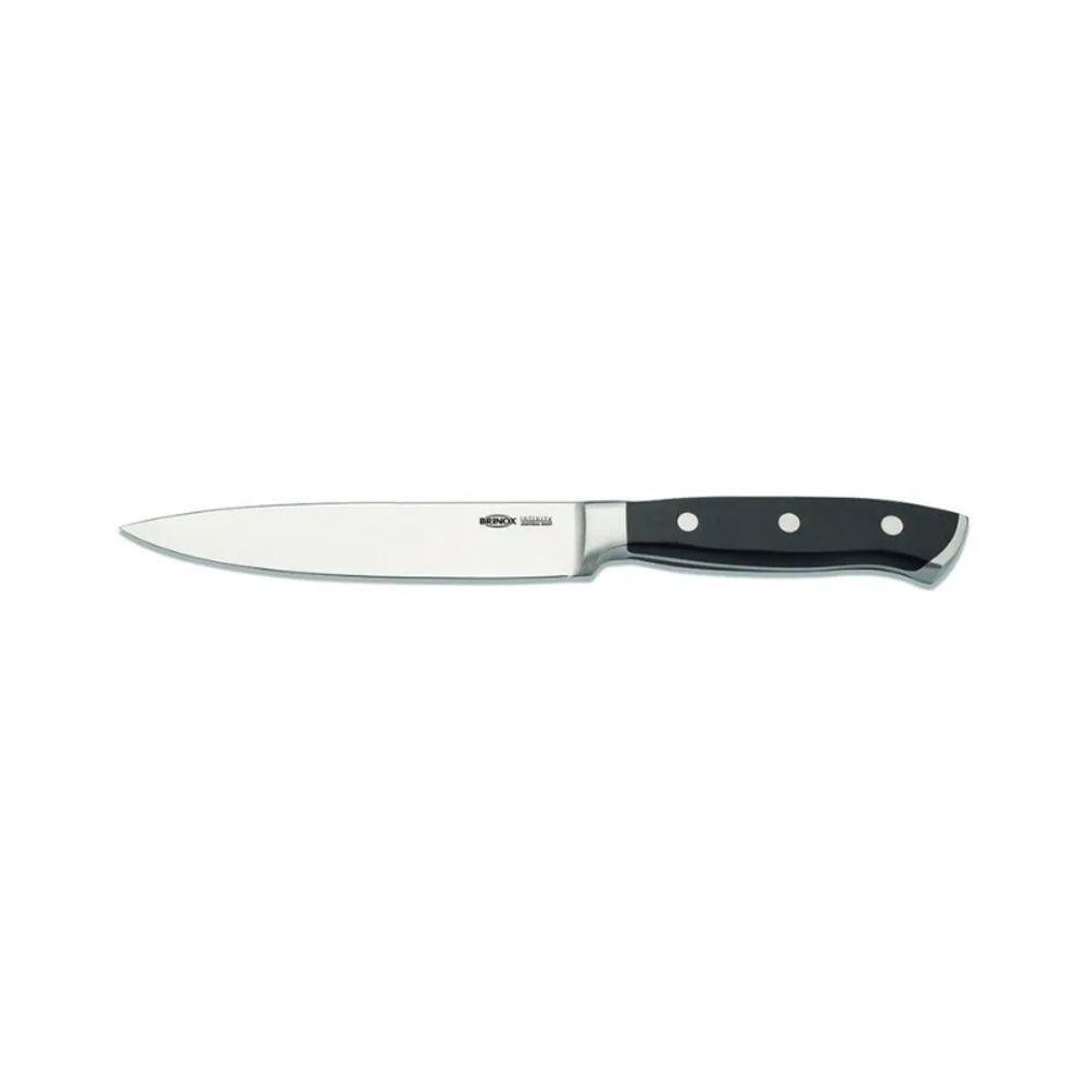 Conjunto De Facas 6 Peças Com Cepo Infinity Em Aço Inox BrinoxConjunto de Facas 6 Peças com Cepo Infinity em Aço Inox Brinox - Ideal para quem busca eficiência e praticidade no preparo dos alimentos.Conjunto Completo e Funcional!O Conjunto de Facas Infinity Brinox conta com 6 peças essenciais para suas tarefas na cozinha, incluindo facas de chef, pão, carne, legumes e utilidades, além de um ceppo prático para organizar e armazenar as facas. Ideal para quem busca eficiência e praticidade no preparo dos alimentos.Design Elegante!O conjunto inclui um elegante ceppo, que organiza as facas de forma prática e mantém sua cozinha sempre arrumada. Com um design moderno e compacto, ele se encaixa perfeitamente em qualquer espaço, combinando funcionalidade com estilo para complementar a decoração da cozinha. Alta Durabilidade!As facas são feitas em aço inoxidável de alta qualidade, proporcionando durabilidade, resistência à corrosão e excelente desempenho de corte. Suas lâminas afiadas garantem precisão e facilidade no corte, tornando o conjunto uma escolha confiável para o uso diário.Características Gerais do Produto: - Marca: Brinox - Linha: Infinity - Material: Aço Inoxidável - Cor: Preto - Garantia: 03 MesesAcompanha o produto: - 01 Faca Chef 8” 01 Faca de Cozinha 8” 01 Faca de Cozinha 5” 01 Faca para Legumes 3 1/2” 01 Chaira 8” Chaira 01 Cepo de Madeira 33x21x9 cm Garantia: - 03 MESES