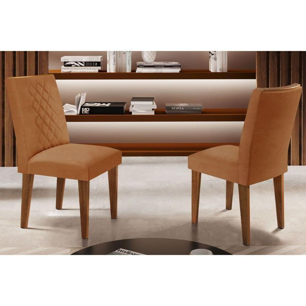Kit 2 Cadeiras De Cozinha Jade Madeira Capuccino-linho Bege Turim - Rufato
