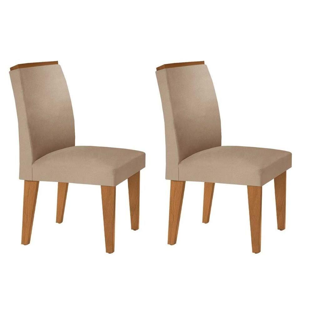 Kit 2 Cadeiras Sala Jantar Lunara 2 Un Madeira Capuccino Linho Bege Turim Rufato