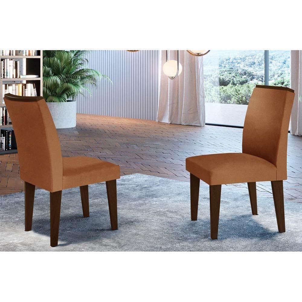 Kit 2 Cadeiras Sala Jantar Lunara 2 Un Madeira Capuccino Linho Bege Turim Rufato