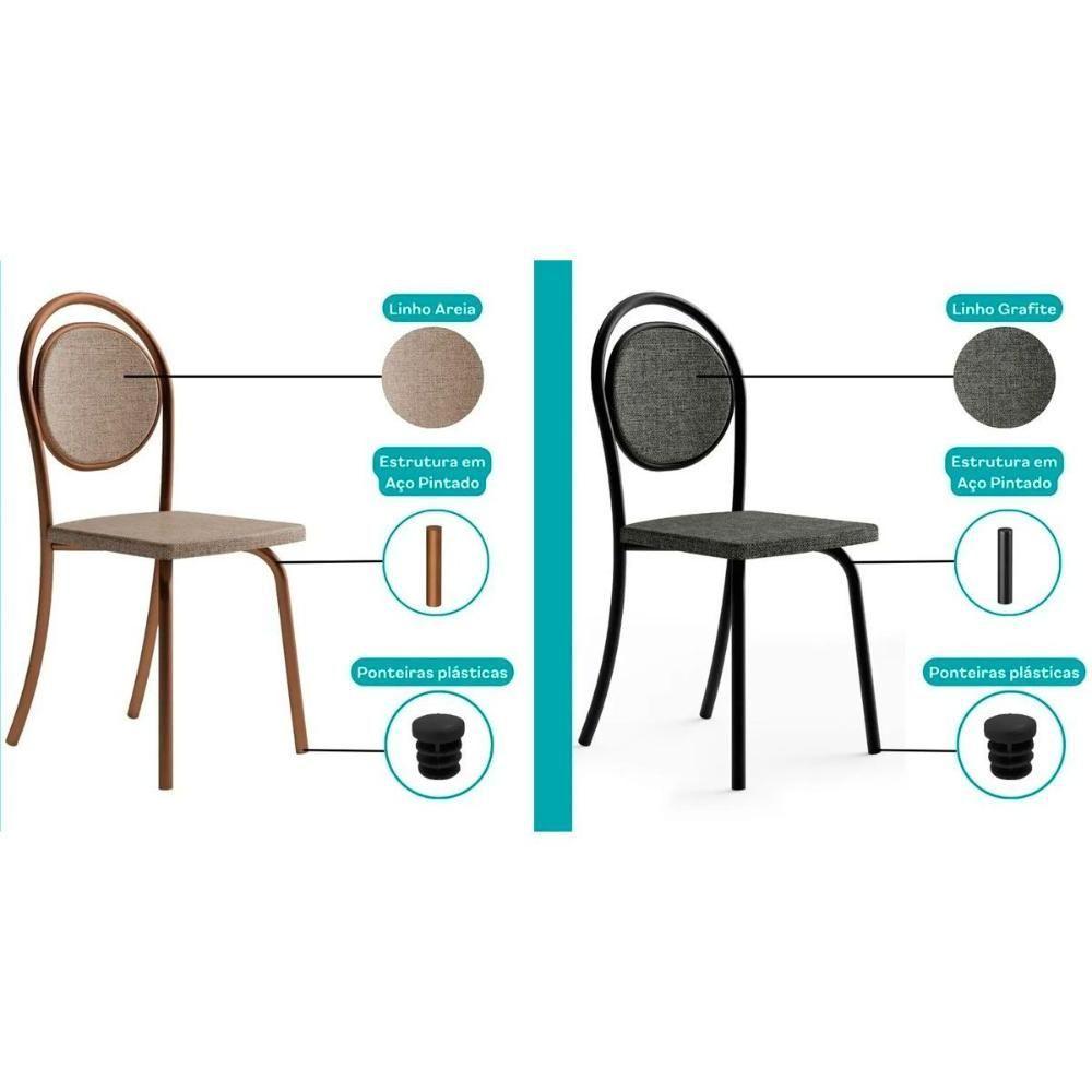 Kit 2 Cadeiras De Cozinha 1738 Aço 2 Uni Rose Linho Areia Courano Caramelo