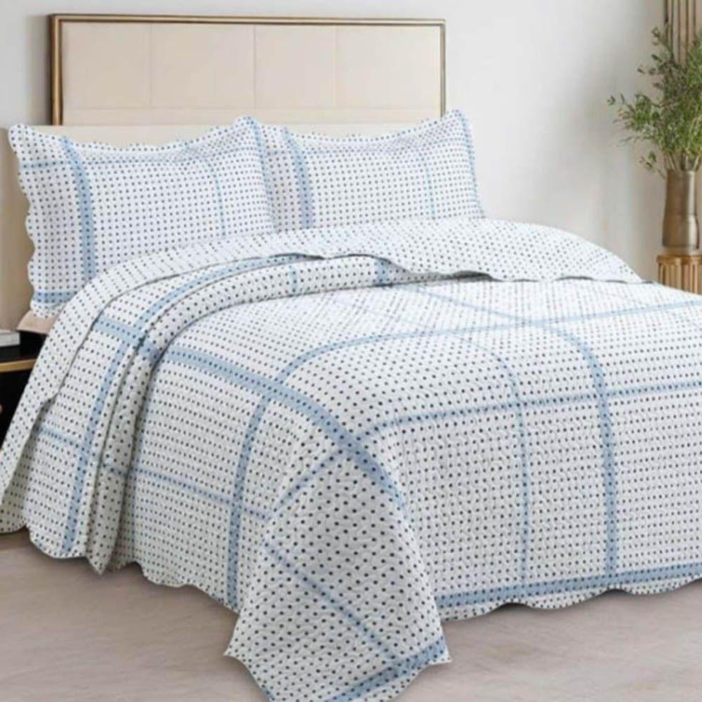 Kit Cobre Leito Colcha Magnus Casal 3 Peças Dupla Face Estampado Geométrico - Bolinhas - 100% PoliésterO Cobre Leito Magnus combina praticidade e estilo, trazendo um visual moderno para transformar o quarto com facilidade. Produzido em 100% poliéster, oferece toque macio, leveza e alta durabilidade, sendo resistente ao uso diário e de fácil manutenção.Seu design dupla face permite alternar entre duas estampas coordenadas, criando composições diferentes conforme a ocasião. O matelado garante um acabamento elegante e estruturado, mantendo o cobre leito sempre alinhado e sofisticado.Uma opção versátil, decorativa e funcional para quem deseja renovar o ambiente com charme e praticidade.Contém na embalagem 03 PEÇAS,SENDO:01 Cobre Leito 2,40m x 2,20m02 Porta travesseiros 70cm x 50cmComposição:Tecido: 100% PoliésterAtenção: As cores do produto podem apresentar pequenas variações de acordo com as configurações da tela do seu dispositivo.