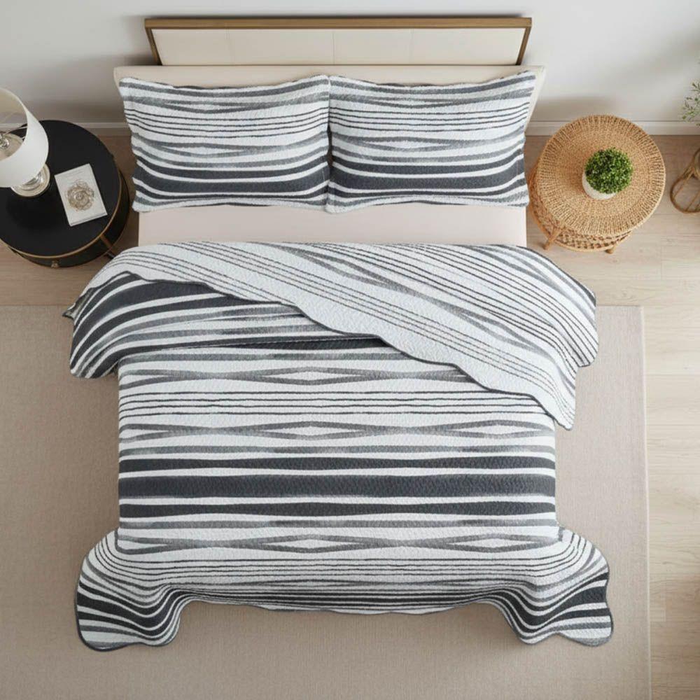 Kit Cobre Leito Colcha Magnus Casal 3 Peças Dupla Face Estampado Geométrico - Preto - 100% Poliéster