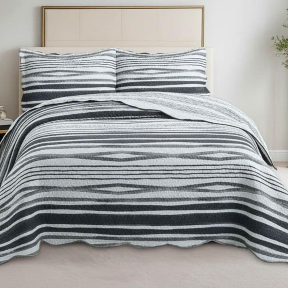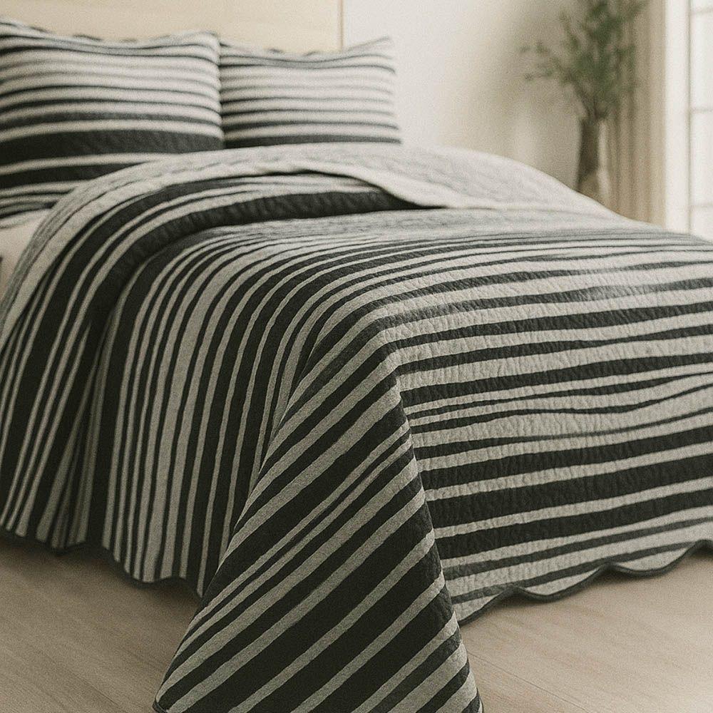 Kit Cobre Leito Colcha Magnus Casal 3 Peças Dupla Face Estampado Geométrico - Preto - 100% PoliésterO Cobre Leito Magnus combina praticidade e estilo, trazendo um visual moderno para transformar o quarto com facilidade. Produzido em 100% poliéster, oferece toque macio, leveza e alta durabilidade, sendo resistente ao uso diário e de fácil manutenção.Seu design dupla face permite alternar entre duas estampas coordenadas, criando composições diferentes conforme a ocasião. O matelado garante um acabamento elegante e estruturado, mantendo o cobre leito sempre alinhado e sofisticado.Uma opção versátil, decorativa e funcional para quem deseja renovar o ambiente com charme e praticidade.Contém na embalagem 03 PEÇAS,SENDO:01 Cobre Leito 2,40m x 2,20m02 Porta travesseiros 70cm x 50cmComposição:Tecido: 100% PoliésterAtenção: As cores do produto podem apresentar pequenas variações de acordo com as configurações da tela do seu dispositivo.