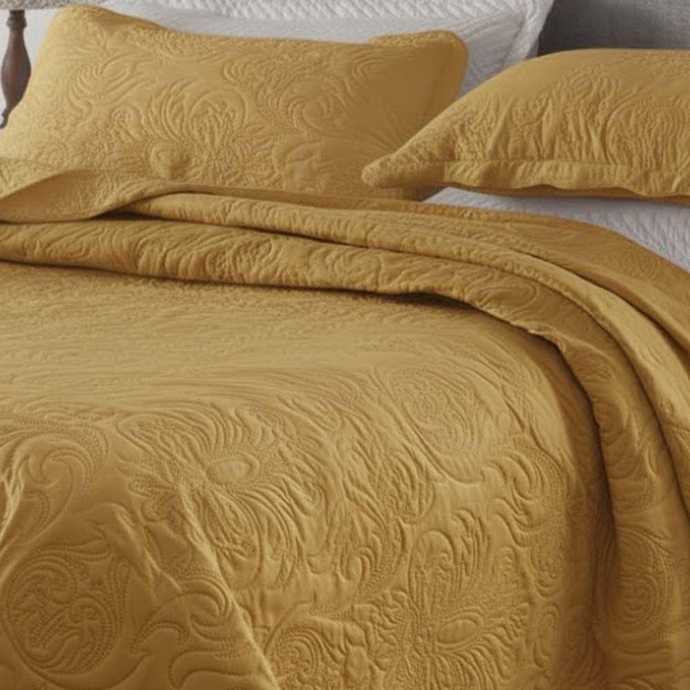 Kit Cobre Leito Colcha Basic Queen 3 Peças Dupla Face Liso Classic - Açafrão - 100% Poliéster